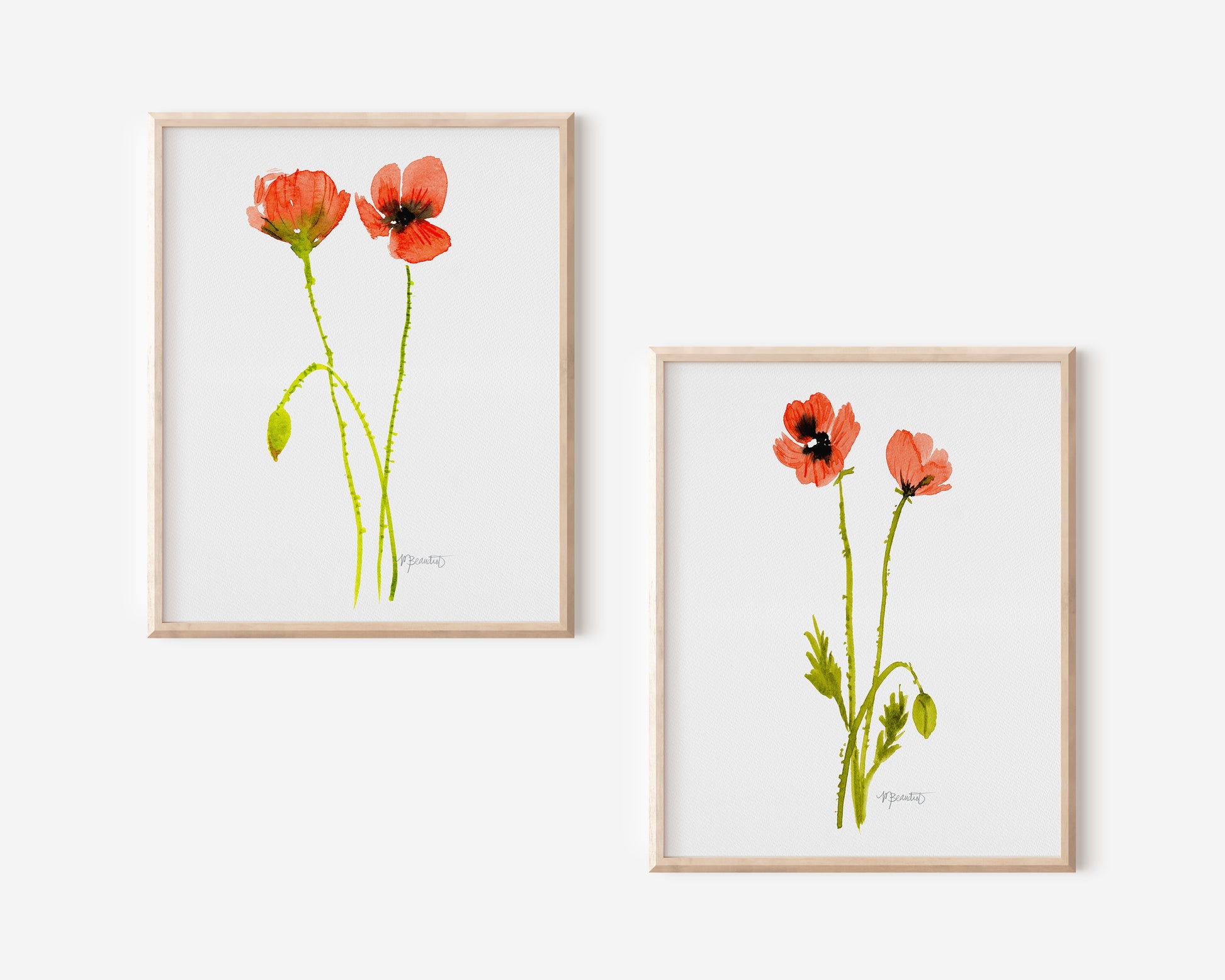 Create a harmonious visual statement with our "Harmony Poppy Pair" Watercolor Print Set. These two captivating poppy prints are designed to go together seamlessly, offering a discounted price for a stunning art duo. Transform your space with the enchanting beauty of these complementary artworks.Size: 8" x 10"