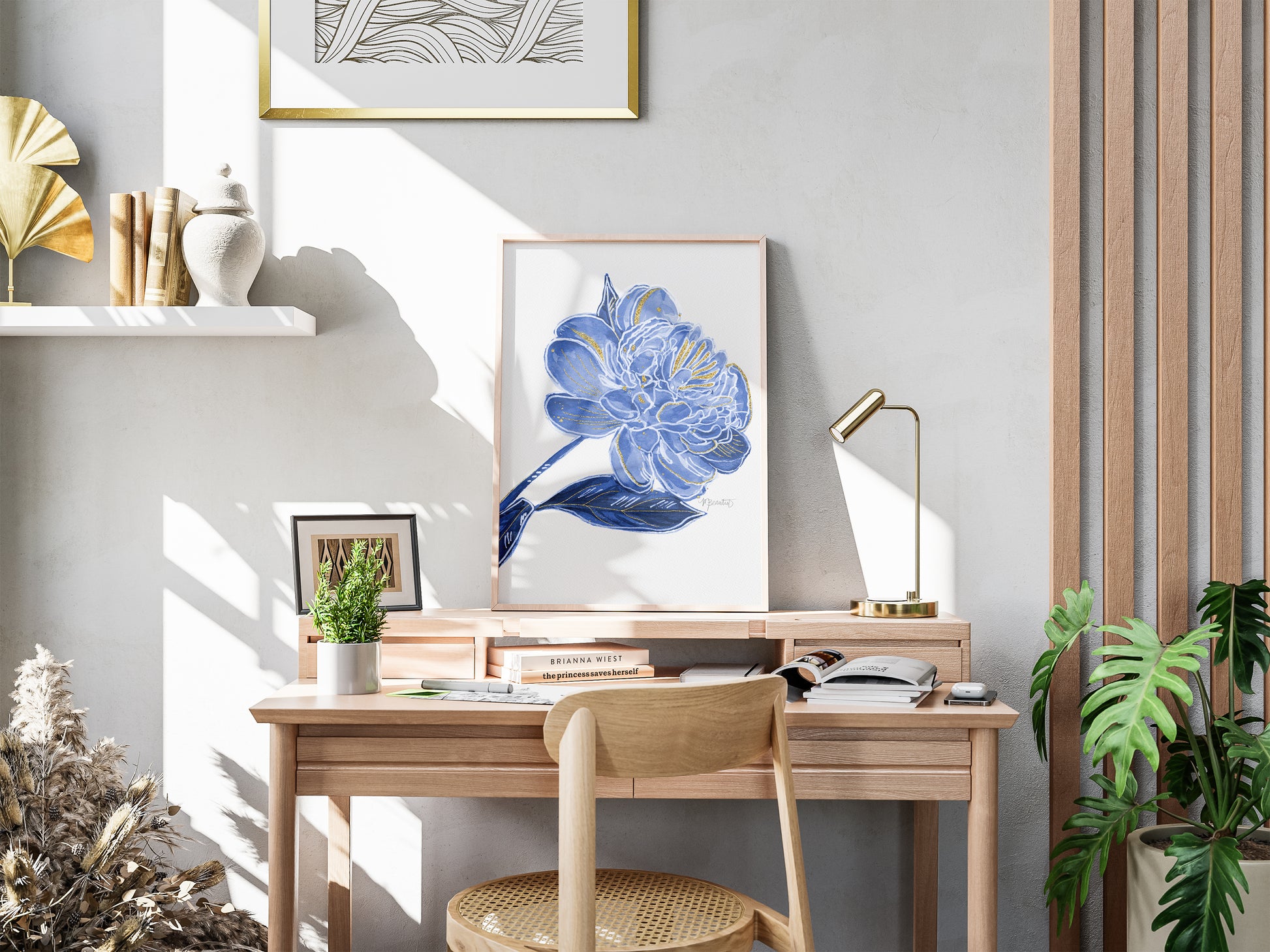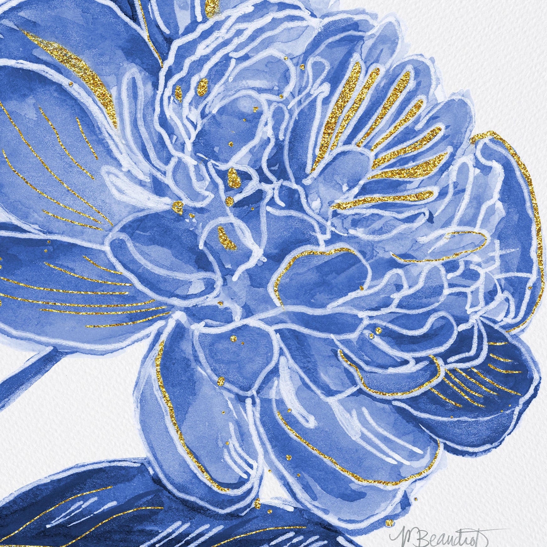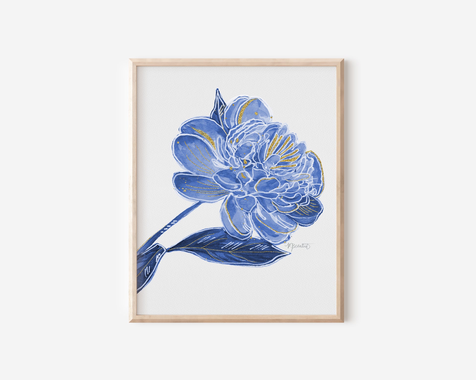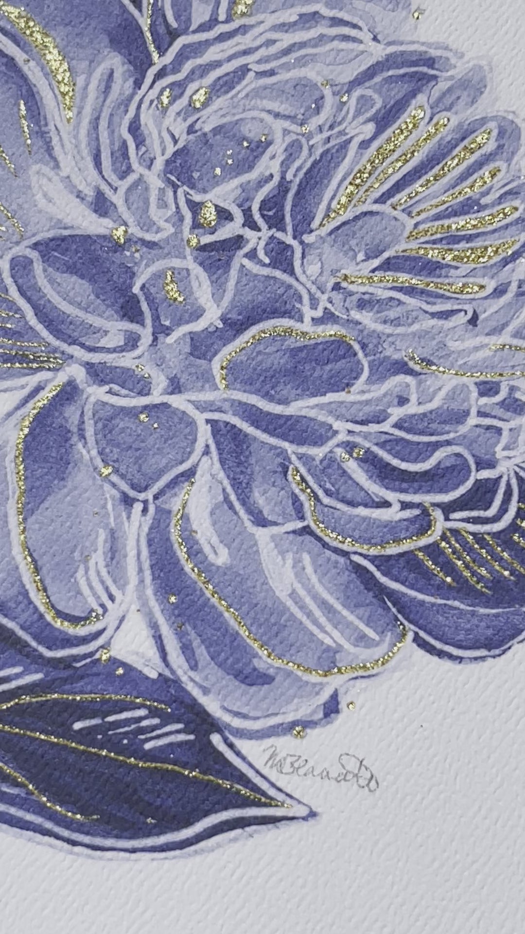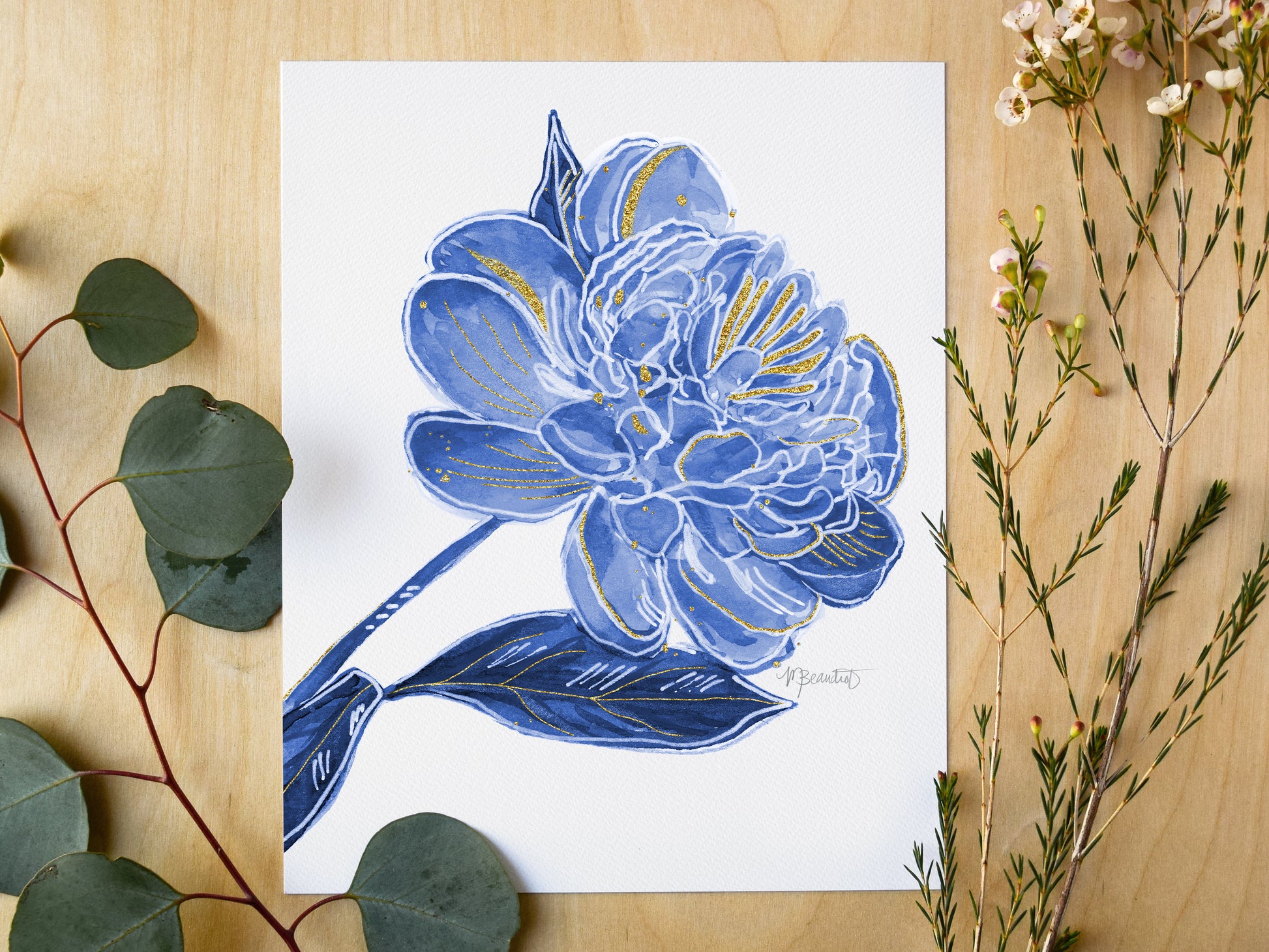 This beautiful, Navy blue watercolor painting of a Peony flower is the perfect way to show someone special how much you care this Valentine's Day. The vibrant pink shades make for a stunning wall decor piece , or it can make a lovely gift for a special someone. With its vibrant colors and elegant flower design, it's sure to bring a smile to whoever sees it. It is embellished with metallic accents to add extra dimension and shine.