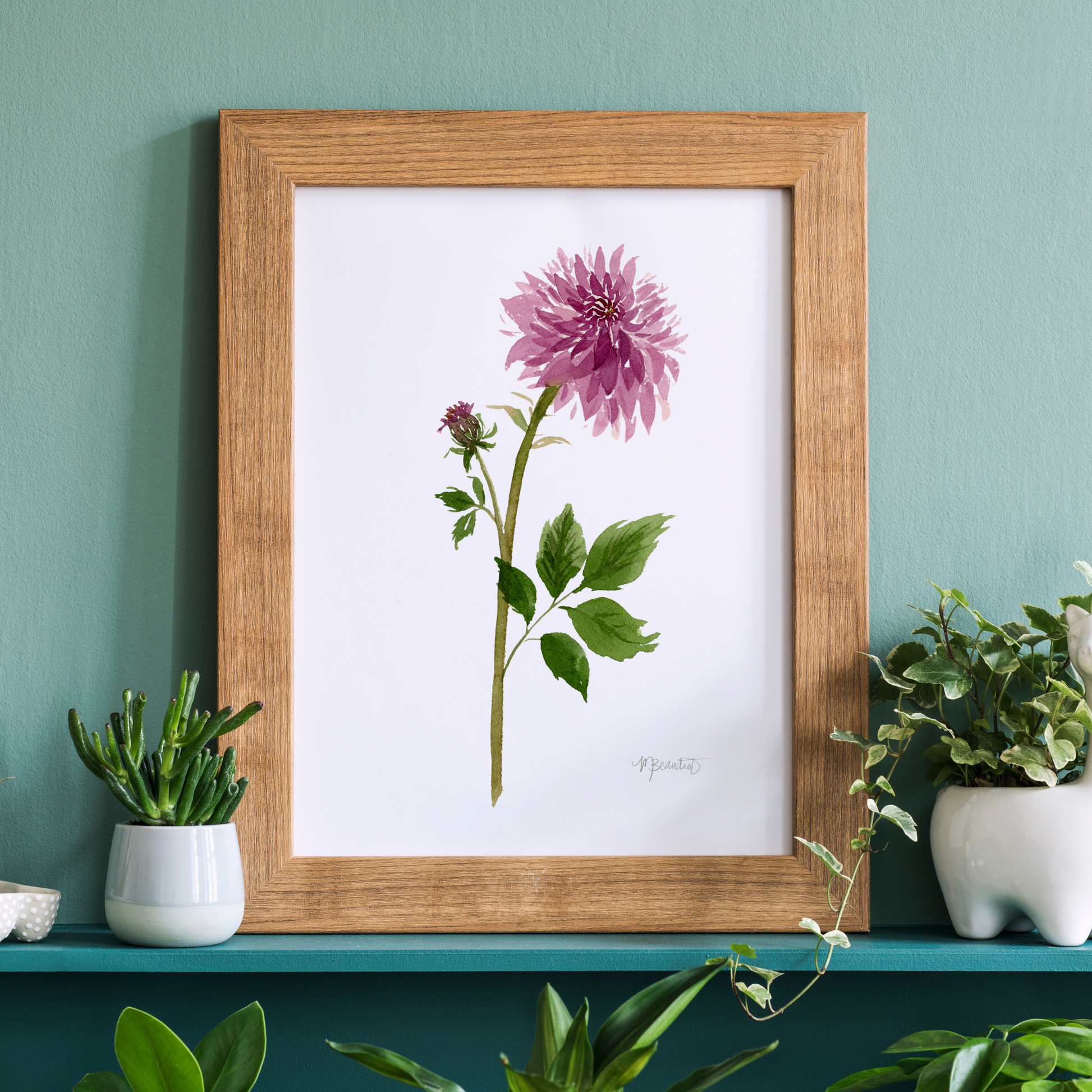 Add some unique and vibrant flair to your walls with our Dahlia Watercolor Art Print! Featuring beautiful burgundy and purple hues, this print is sure to make a statement in any space. Elevate your home decor with this stunning piece of art.