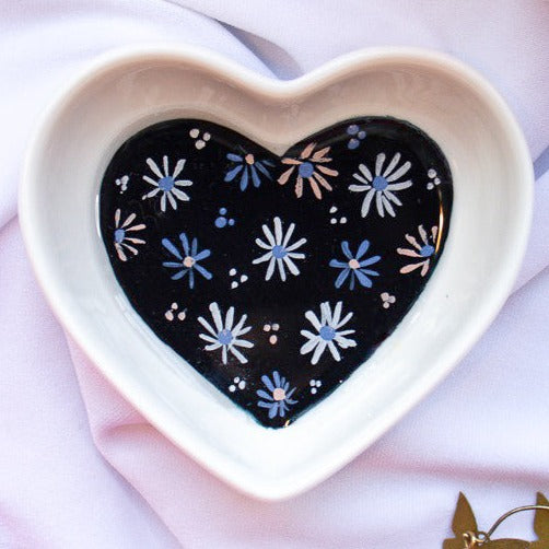Daisies in Dark Navy Blue Ceramic Trinket Dish