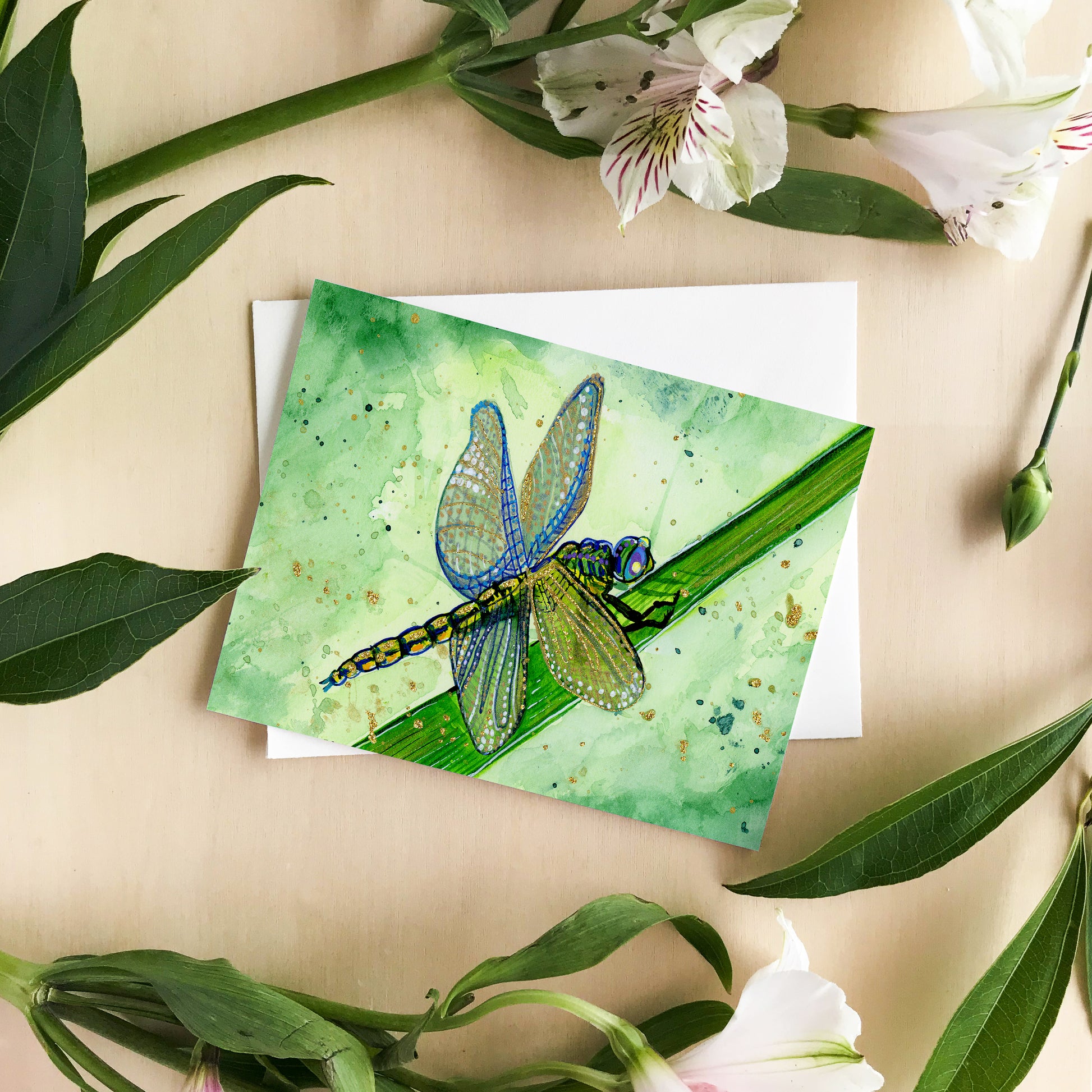 Green Dragonfly Watercolor Art Print