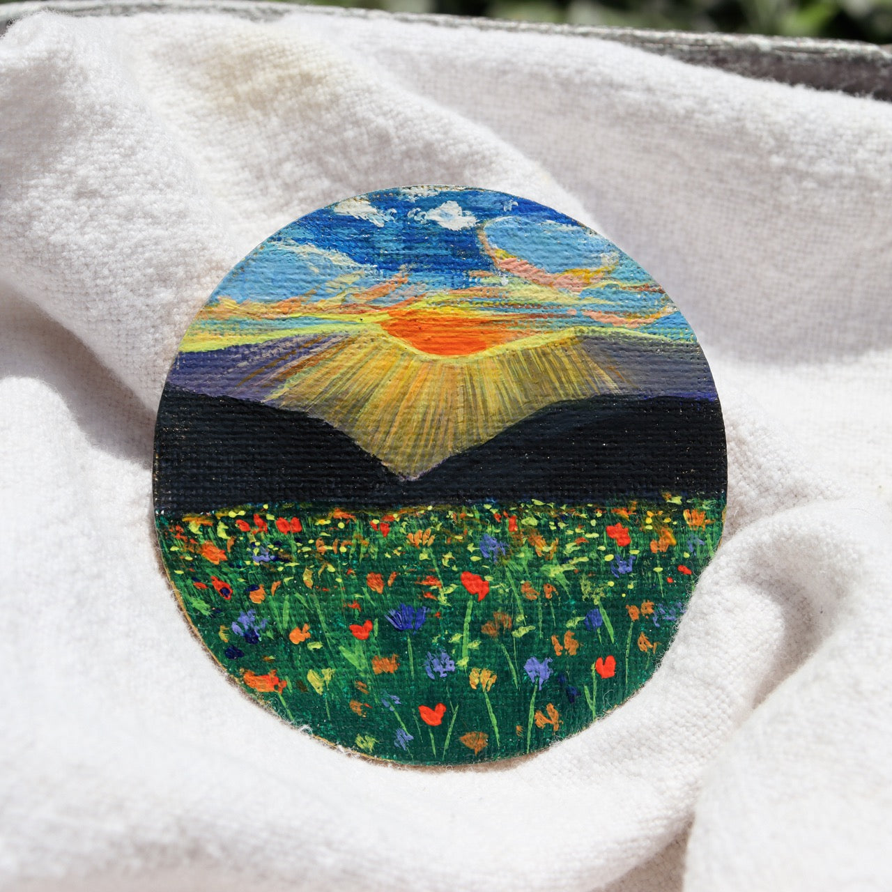 Unlock the beauty of nature with our dazzling Dusks Embrace Painted Landscape mini magnets! Crafted from acrylic paintings and coated with a glossy varnish, these vibrant pieces boast luxurious gold edges that will up the luxe factor of any home or office décor. Fridge, magnetic boards - you name it, this little addition will bring an eye-catching artistic touch to it!