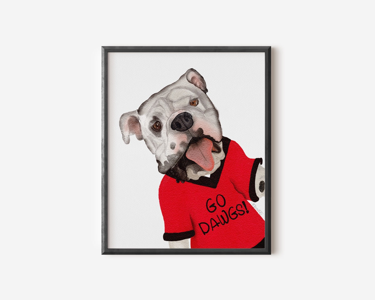Get pumped up with our "Go Dawgs!" art print featuring the beloved Atlanta mascot. With a vibrant watercolor painting and state mascot, show off your team pride in a unique way. Perfect for any dawg fan, this art print will be the highlight of any room. (Sic 'em!)