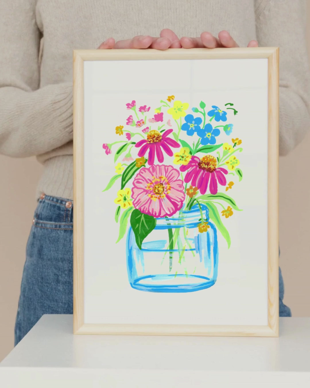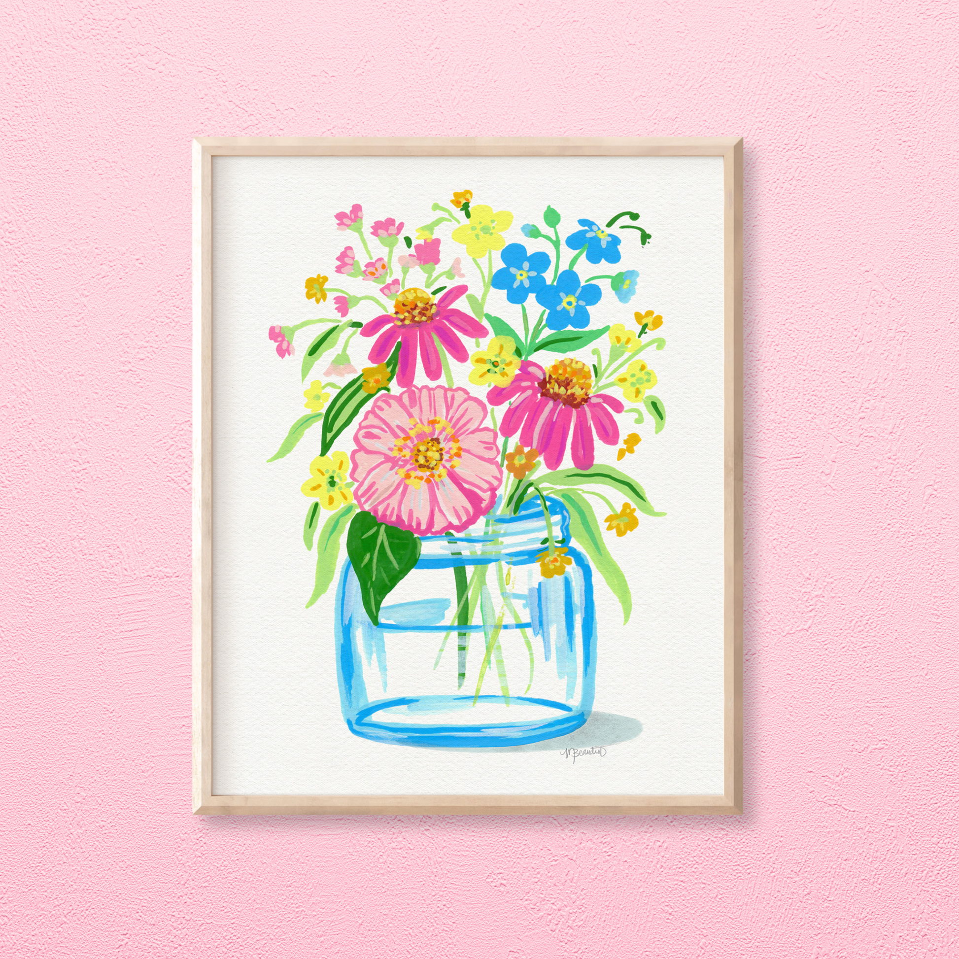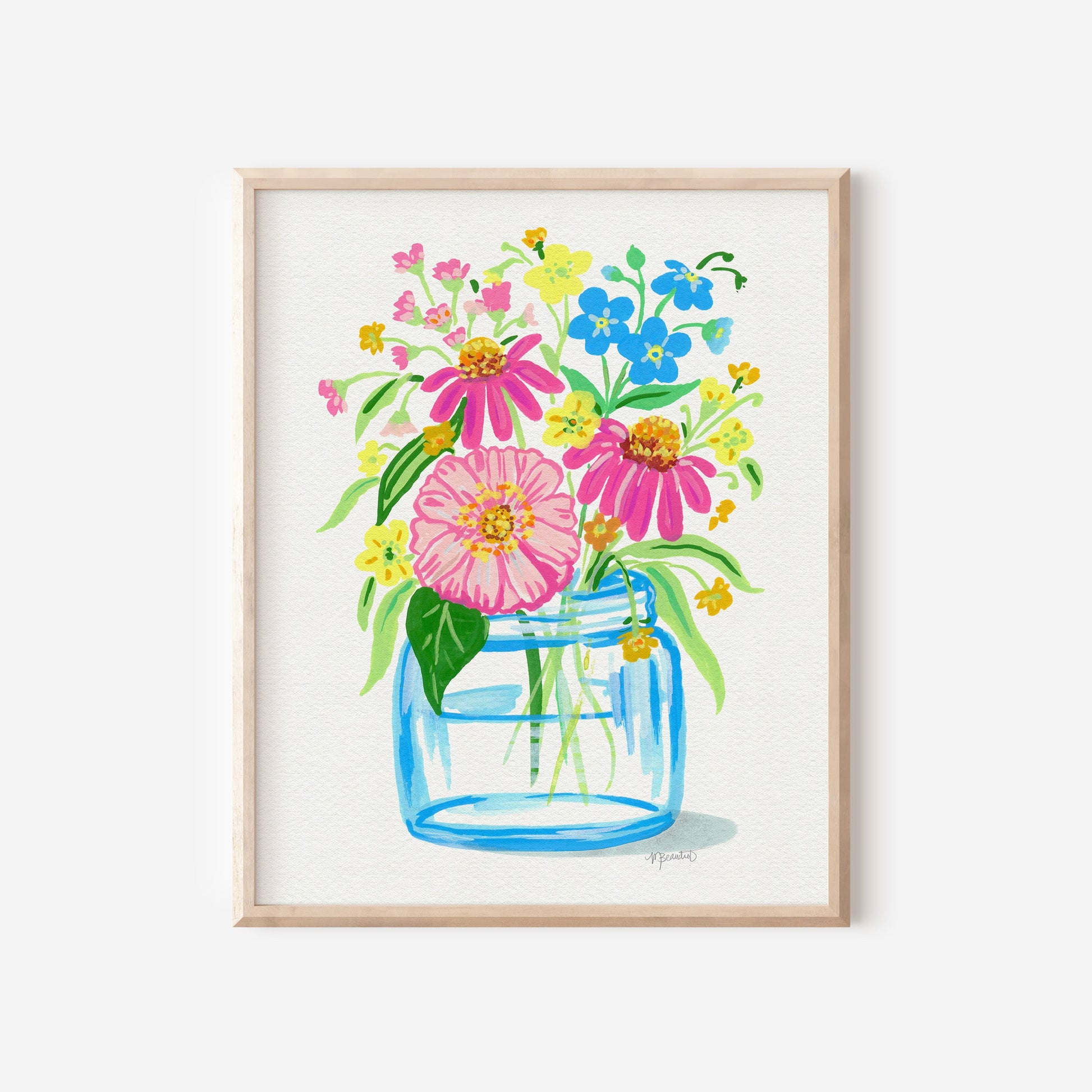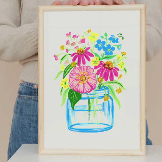 Bring joy and color to any space with Happy Flowers Art Print. Featuring vibrant acrylic-painted flowers in a vase, this playful artwork adds a burst of brightness and cheerfulness to your walls. Perfect for uplifting your mood and brightening your home or office decor.