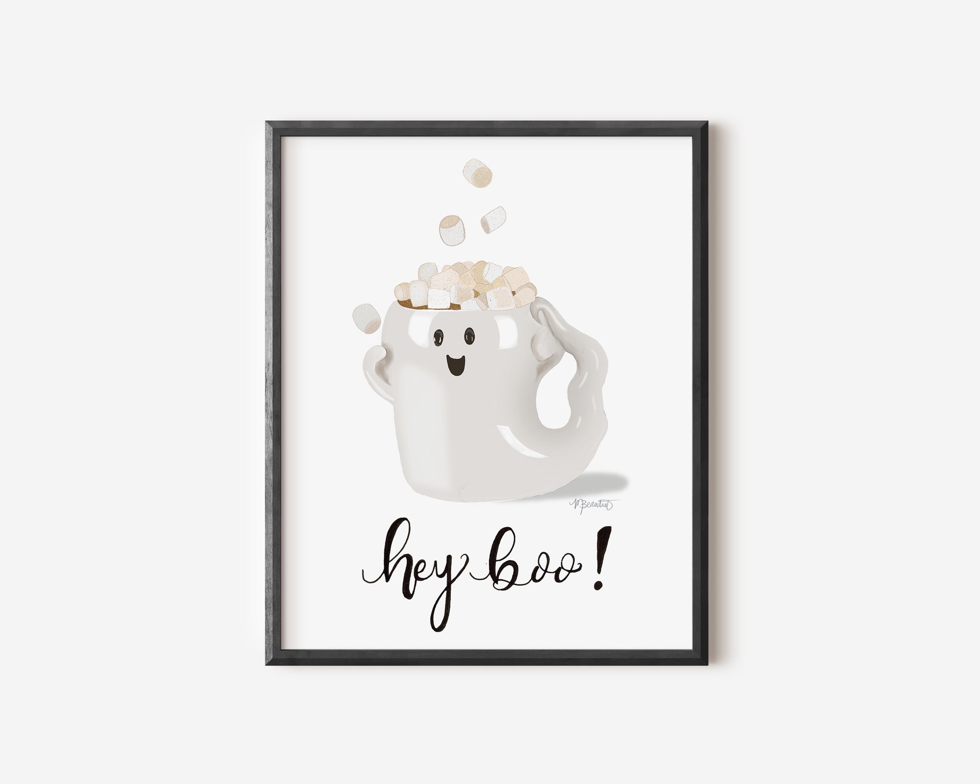 Settle in with our cozy Hey Boo Ghost Mug Art Print - a cutesy watercolor portraying a ghostly mug filled with happy marshmallows! Not only does this piece promise some spooky-sweet vibes, but perhaps a reminder of the marshmallowy comforts of home. What's not to haunt for?!