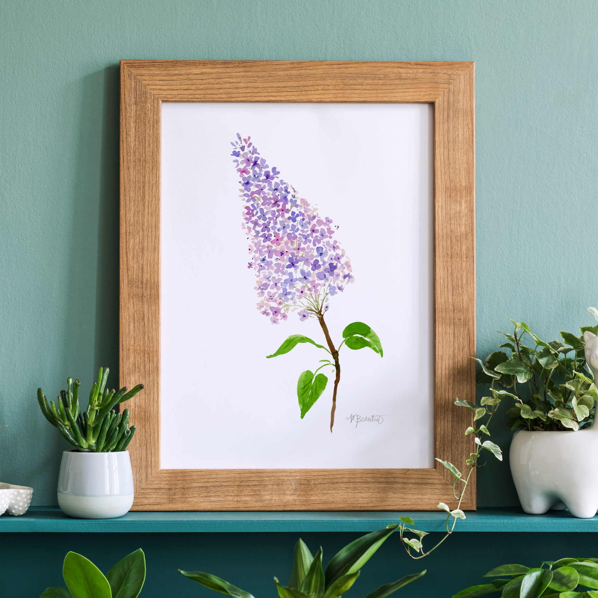 Add a pop of playful color to your space with our Lilacs Watercolor Art Print. Featuring the signature purple-pinky hues of lilacs, this print will bring a touch of nature's beauty to any room. Hang it up and watch your space blossom!