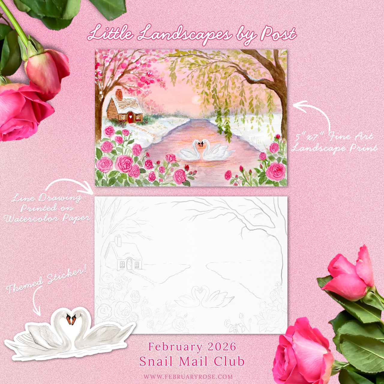 Little Landscapes by Post is a cozy little print club that brings a new 5×7 fine art landscape print, a corresponding line drawing on watercolor paper and a sticker straight to your mailbox each month! Each print is designed to capture the feeling of each month of the year! From autumn pumpkin patches to quiet snowy woods and sunny spring fields..it’s a slow, simple kind of happy mail.. something to look forward to, tucked between the bills. When was the last time you were excited to open an envelope?!