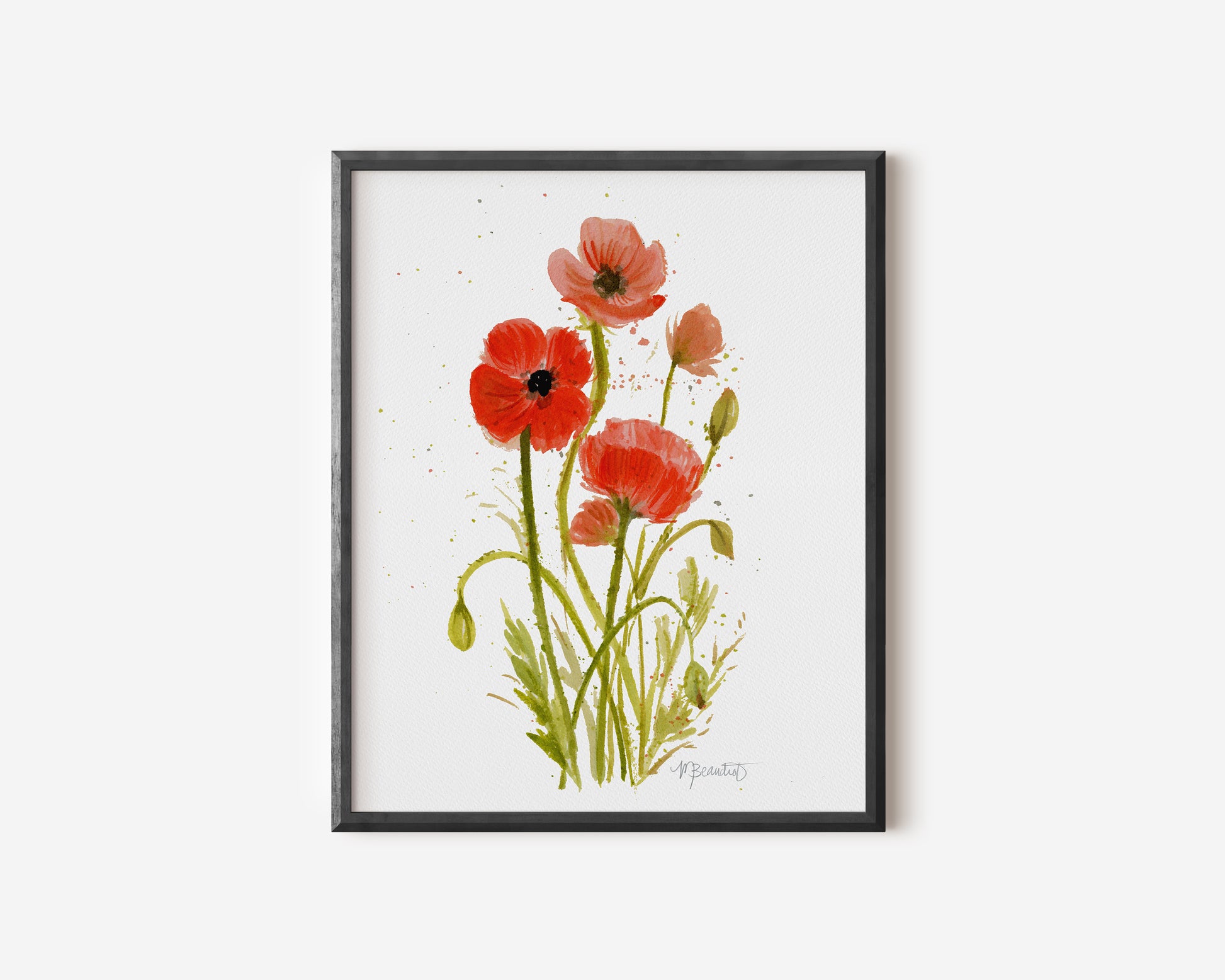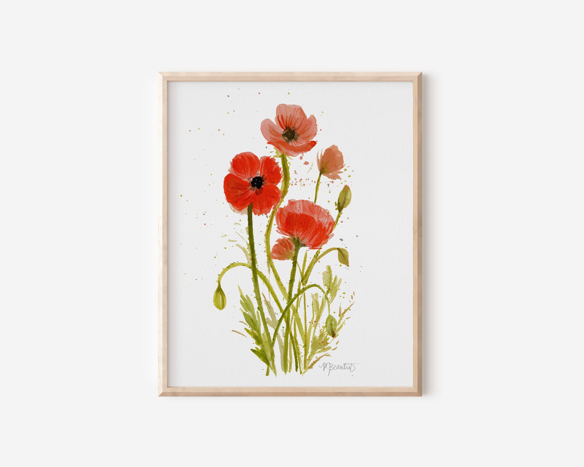 Discover the captivating beauty of our "Loose Vibrant Red Poppy Bouquet" Watercolor Painting Print. With its vibrant hues and free-spirited charm, this high-quality print brings the essence of a blooming bouquet into your space. Add a touch of natural splendor and artistic flair to your decor with this striking artwork.