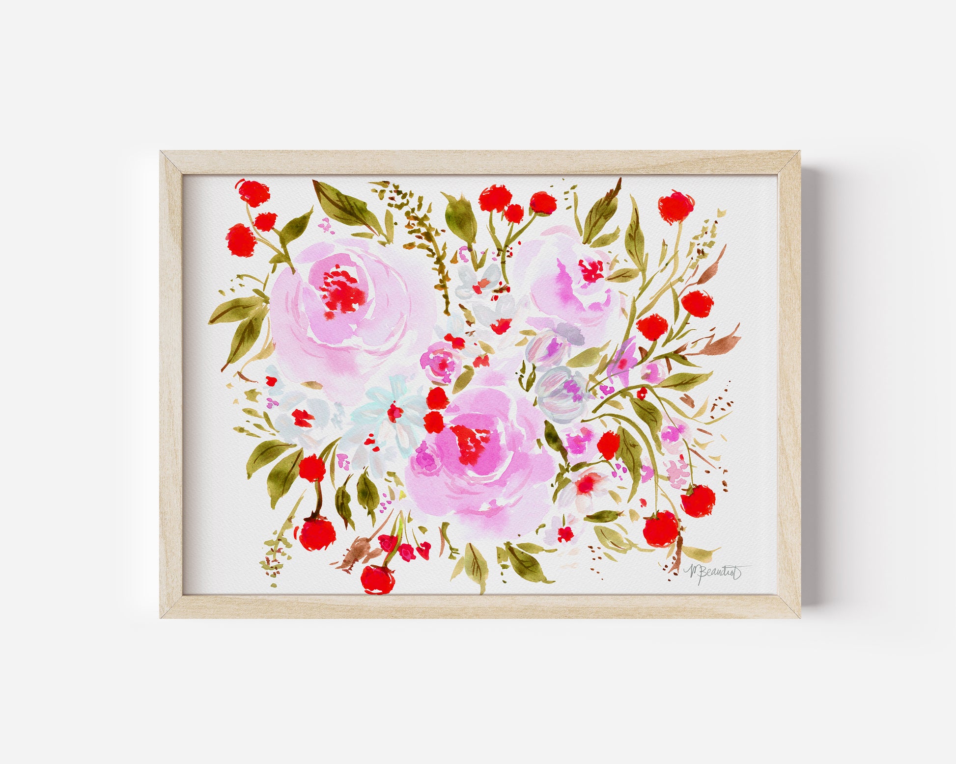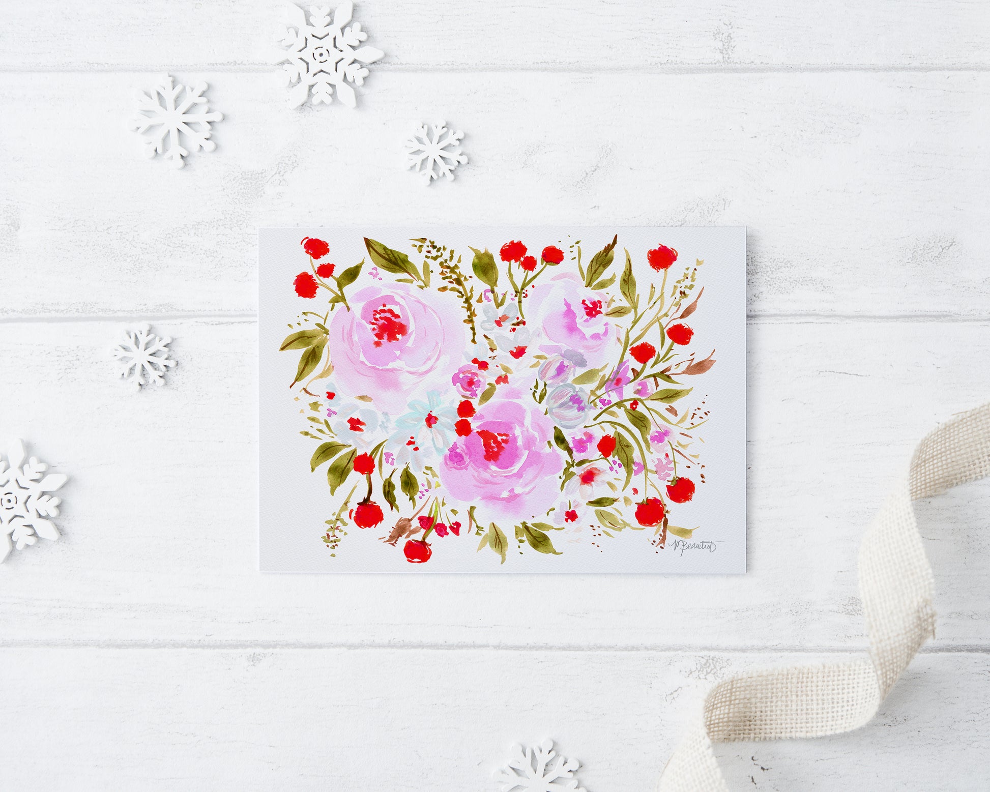 Spread some joy with my watercolor Holiday Burst print! Featuring soft pink and bright red florals.