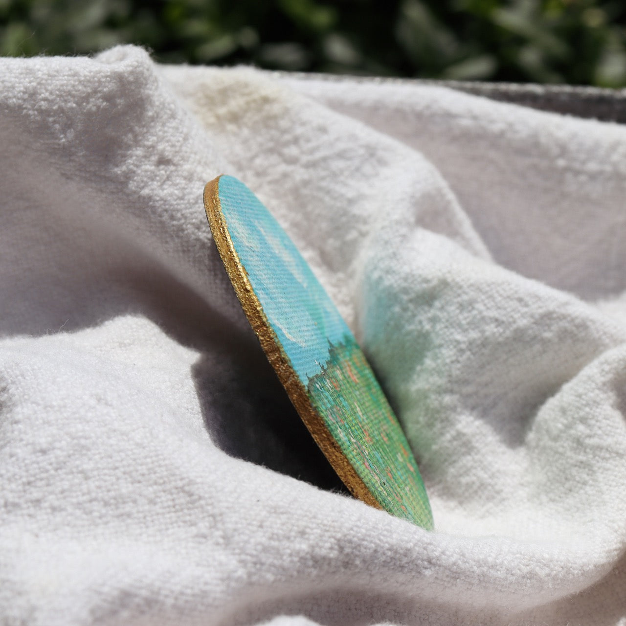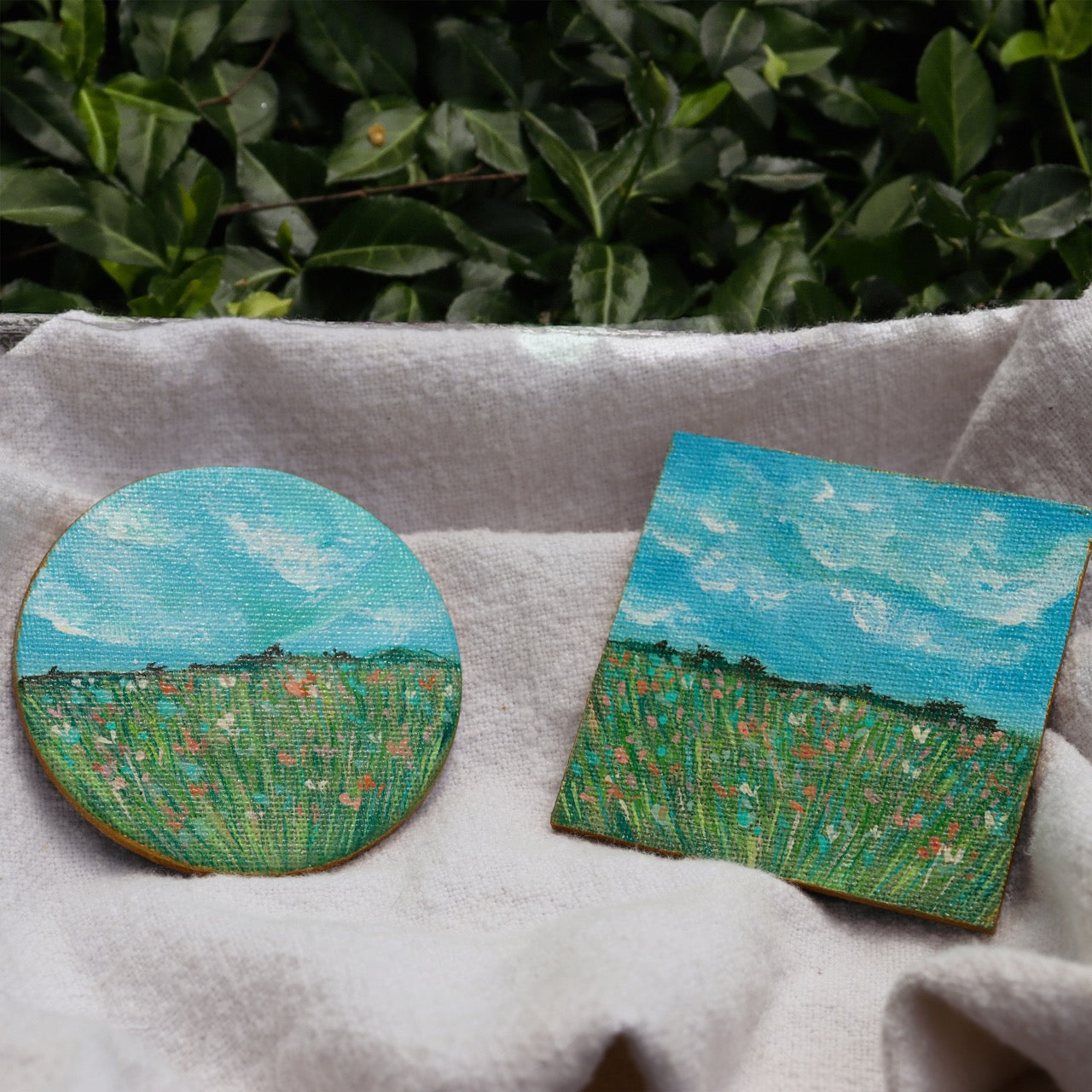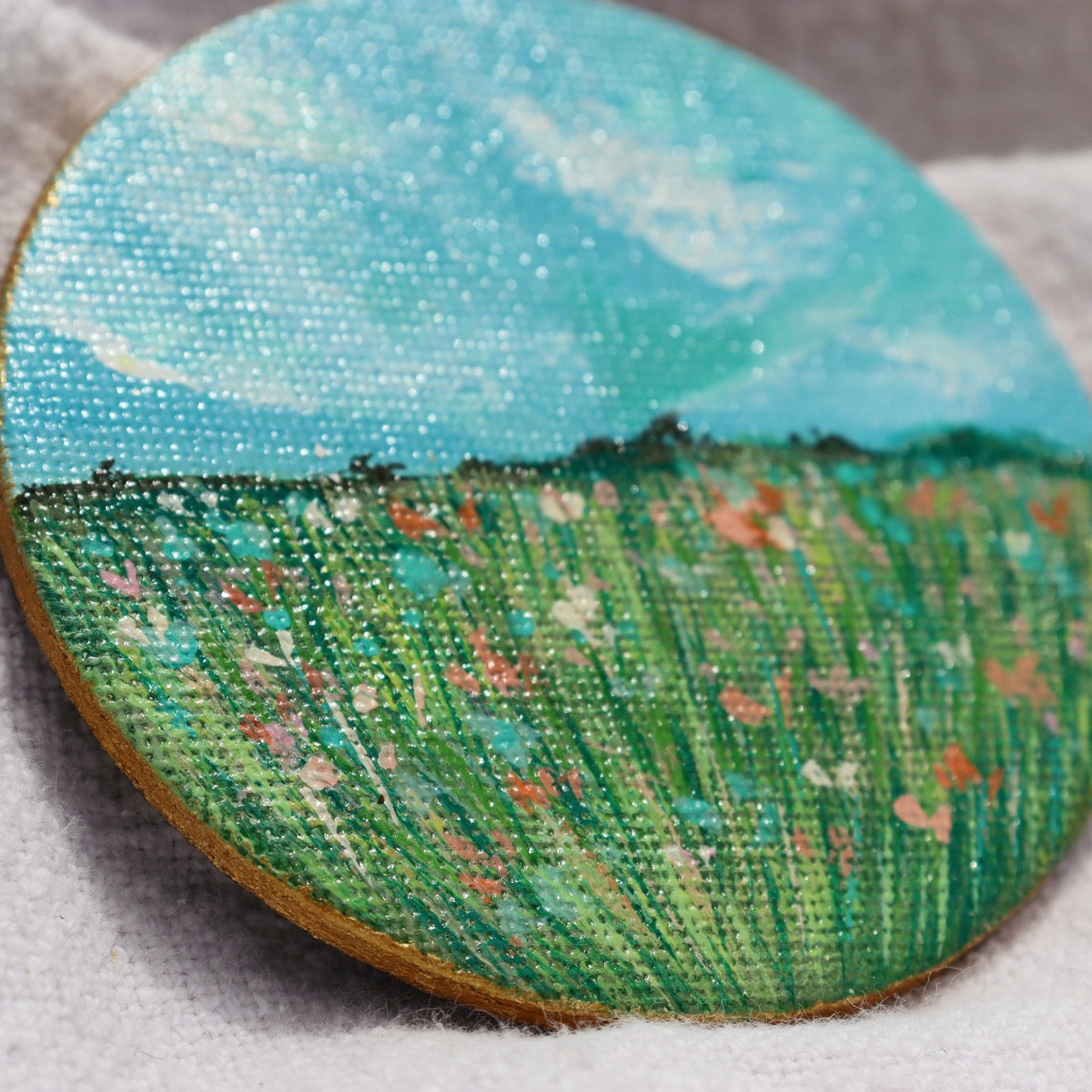 Admire the delicate beauty of nature with our Meadow of Dreams Painted Landscape Magnet! The captivating acrylic paintings are coated in glossy varnish and edged in metallic paint, making it both a functional and decorative item for your refrigerator, office, or any metallic surface. Let your home decor take flight and experience nature's wonders with this unique piece!
