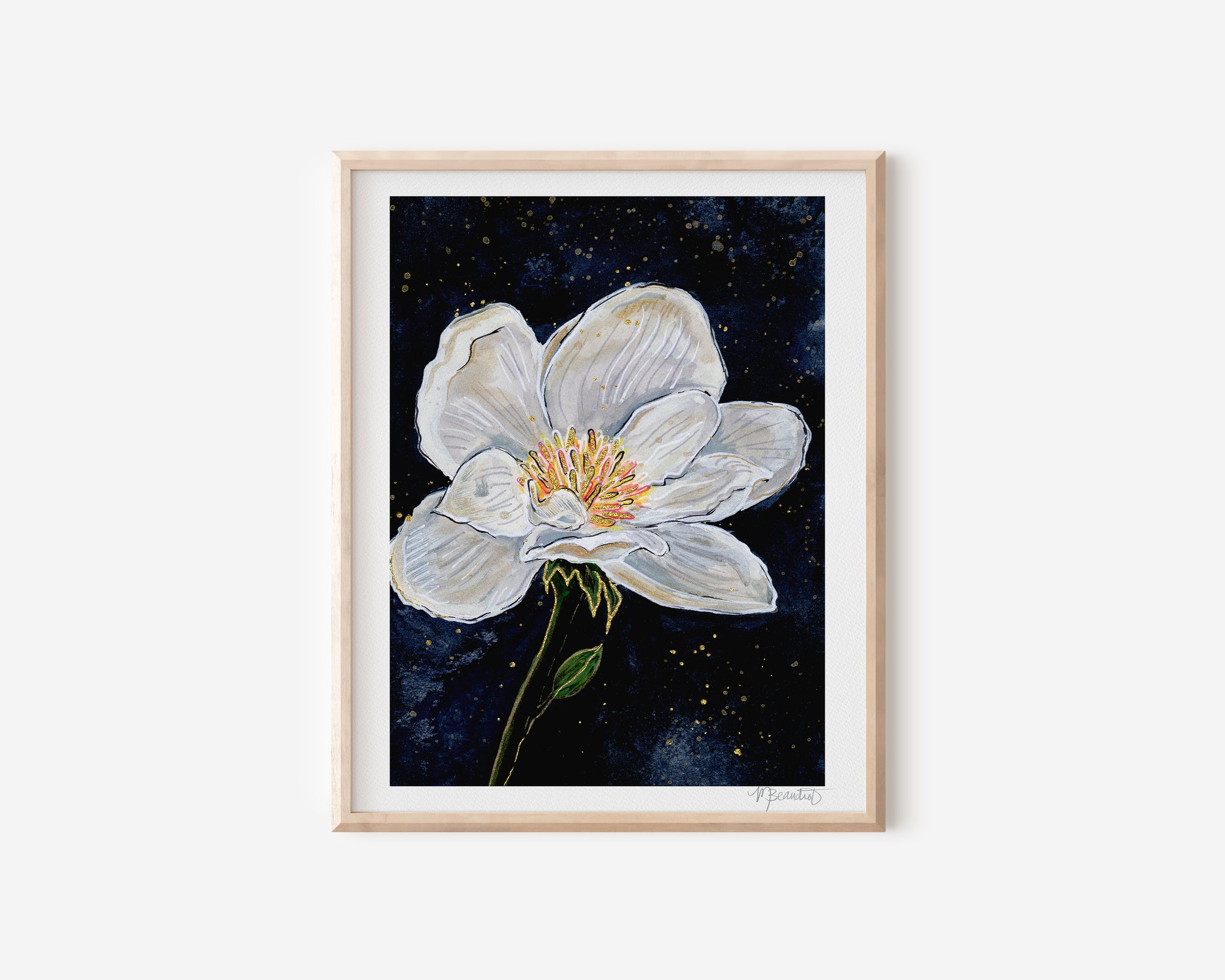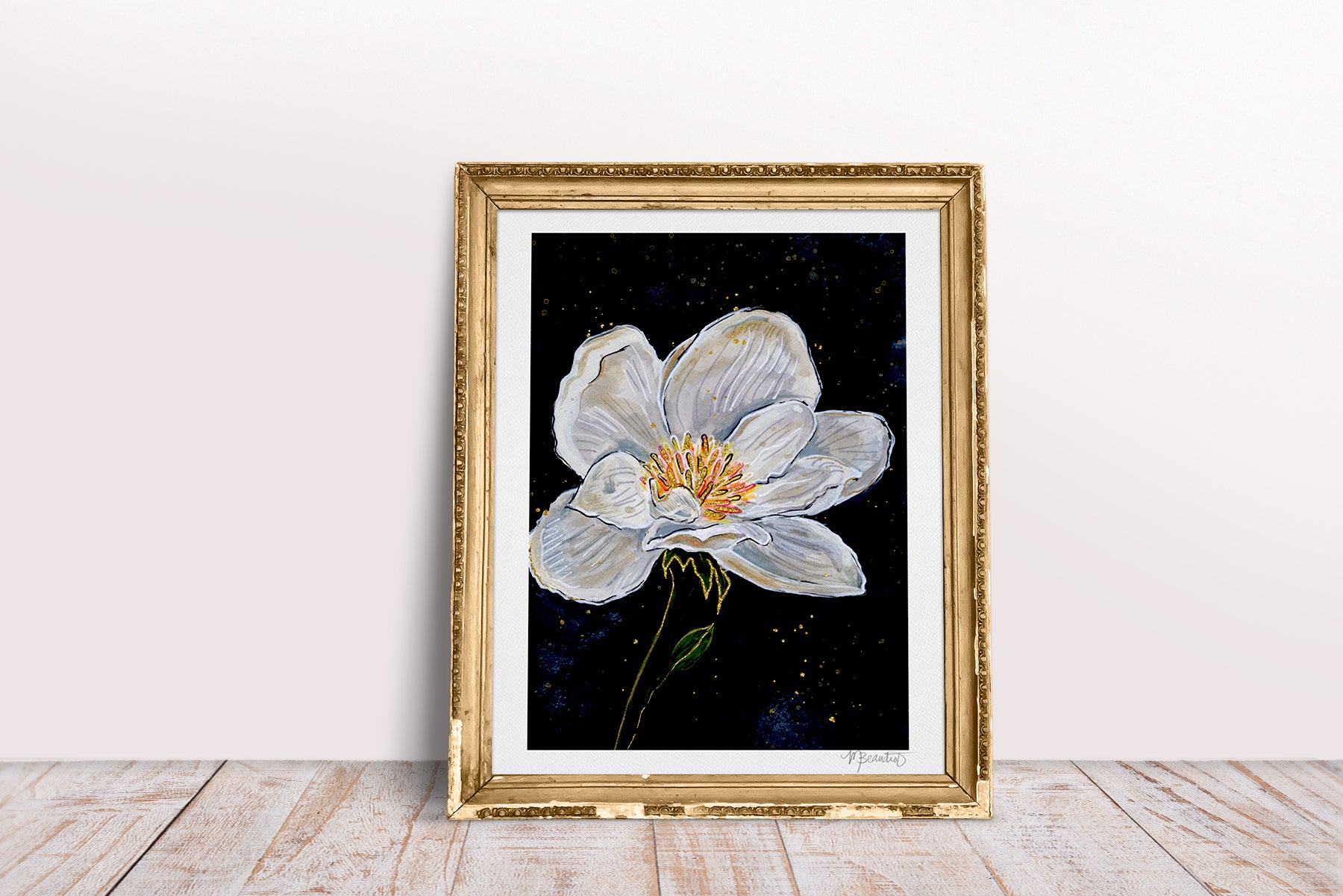 This beautiful and best selling painting of a Magnolia Flower is sure to make a statement in any room! With its elegant and moody floral design, it features metallic accents that are sure to catch the eye. This piece is perfect for wall decor, and can be easily dressed up for special occasions or holidays. Its versatile design and sophisticated style make it the perfect addition to any home.