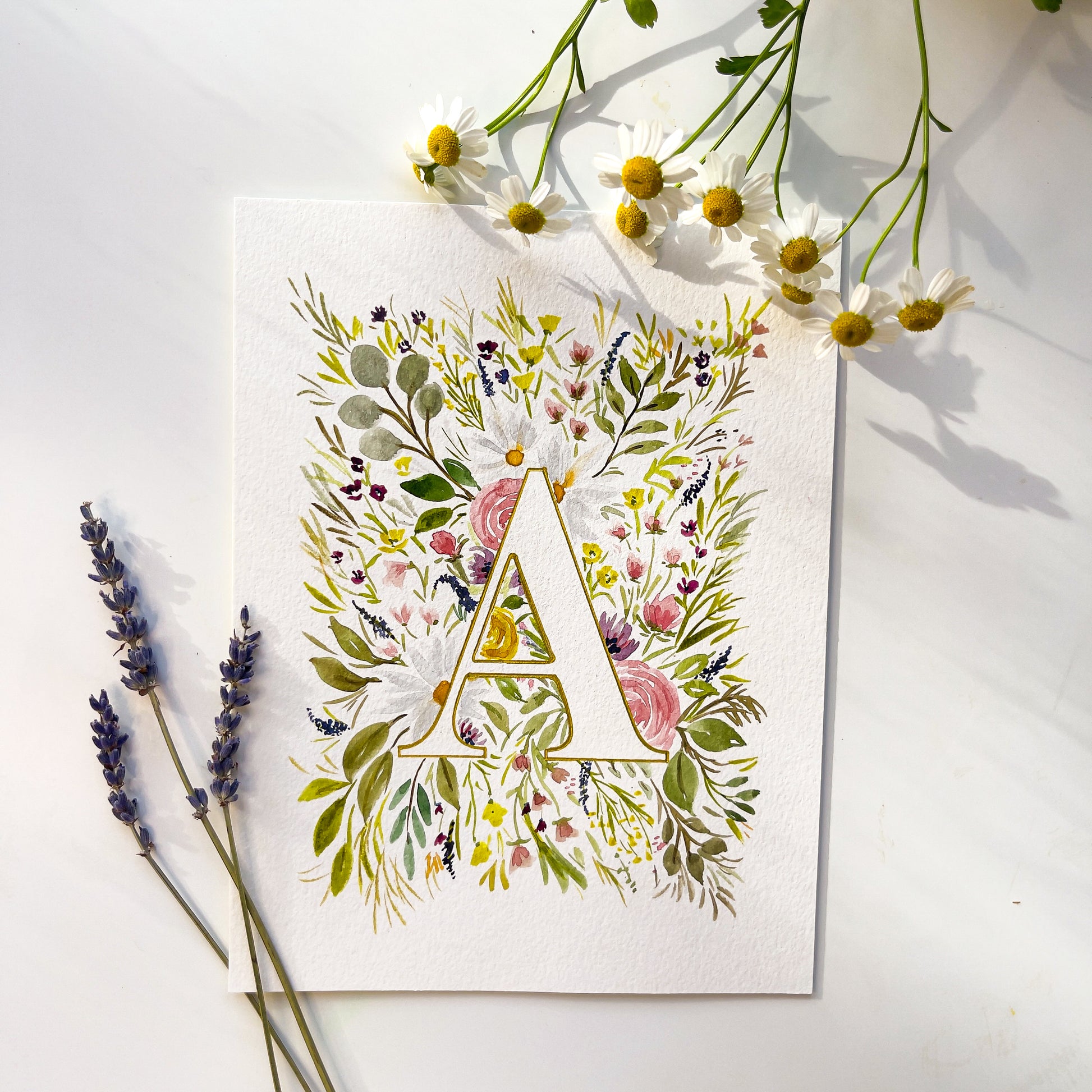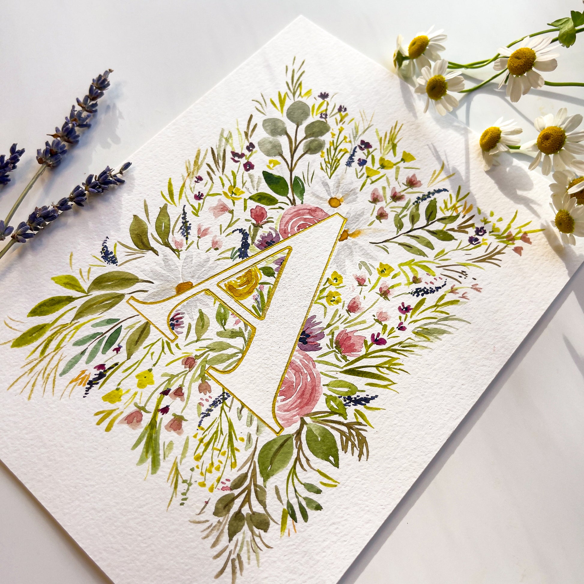 Add a timeless touch to any space with this one-of-a-kind, monogram painting! An original watercolor design, featuring a metallic gold-outlined letter, captures beauty and elegance in one enchanting piece. Get it now, before it's gone forever!