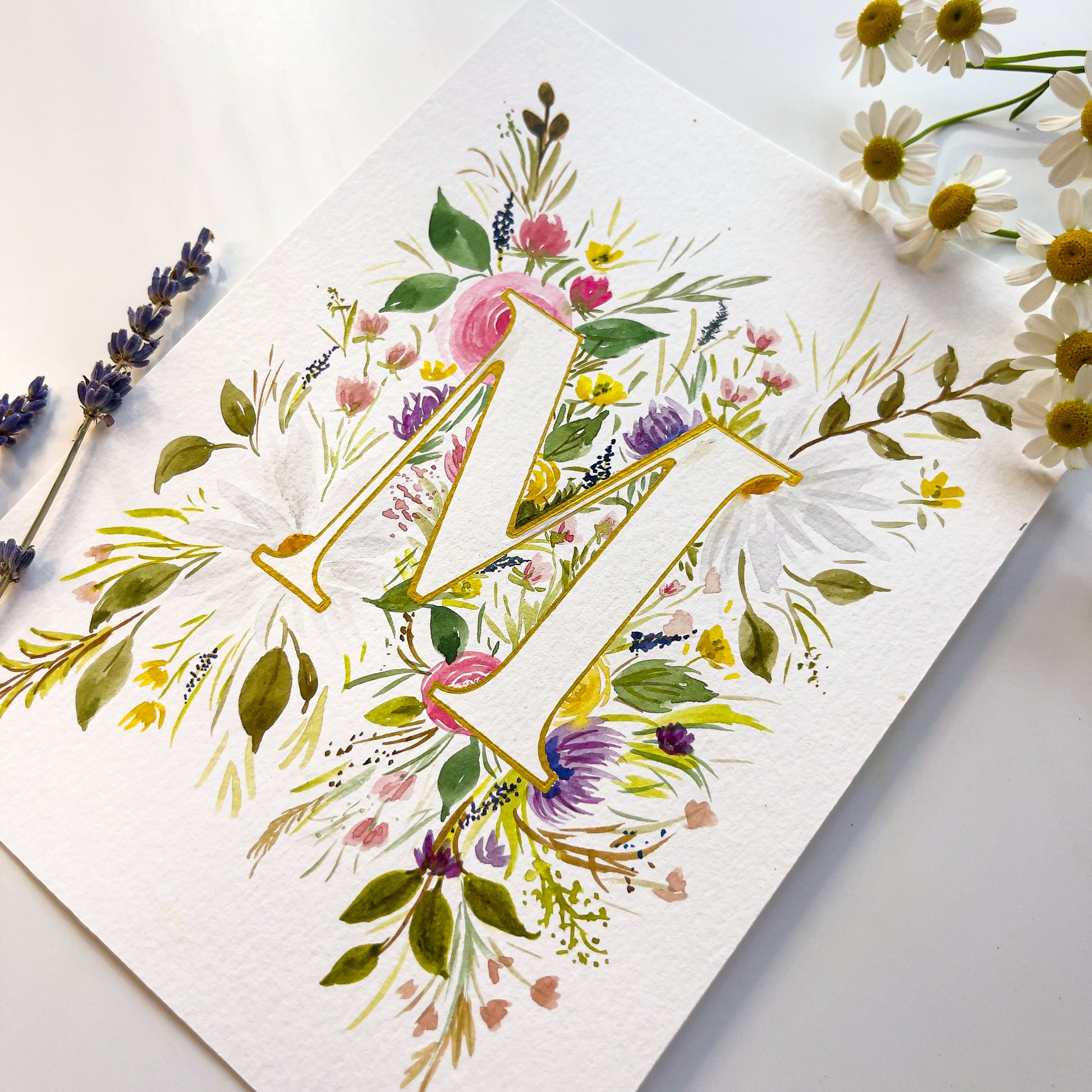 Add a timeless touch to any space with this one-of-a-kind, monogram painting! An original watercolor design, featuring a metallic gold-outlined letter, captures beauty and elegance in one enchanting piece. Get it now, before it's gone forever!