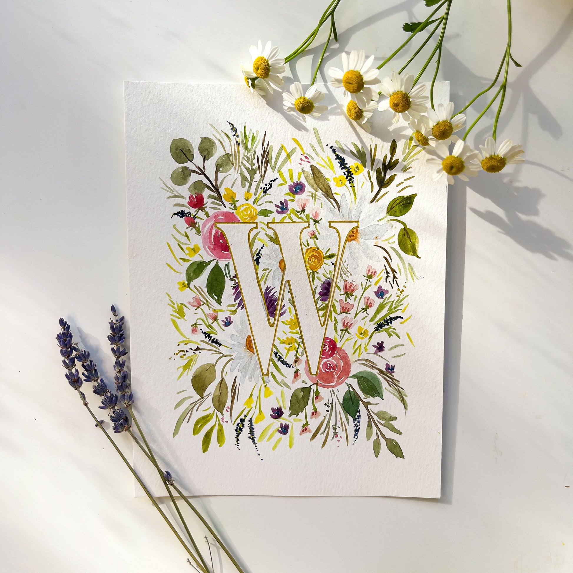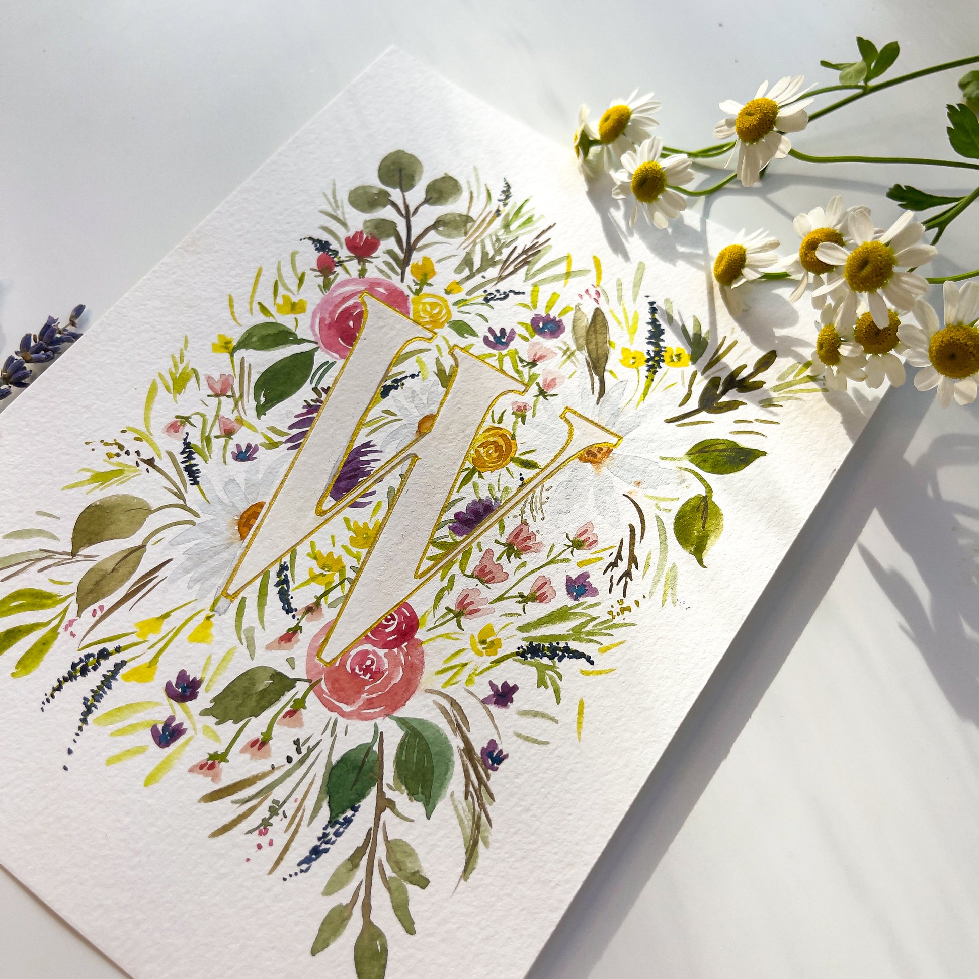 Add a timeless touch to any space with this one-of-a-kind, monogram painting! An original watercolor design, featuring a metallic gold-outlined letter, captures beauty and elegance in one enchanting piece. Get it now, before it's gone forever!
