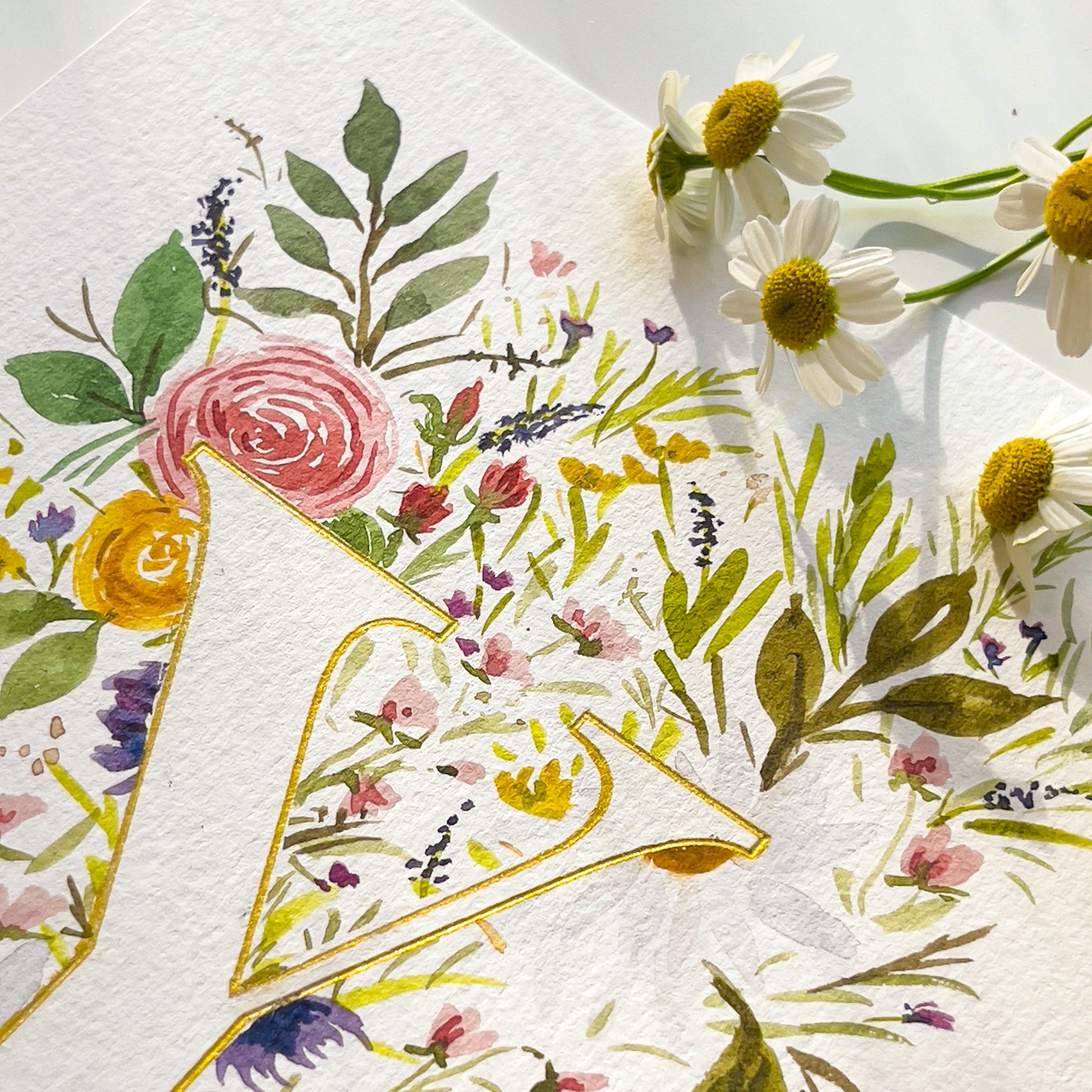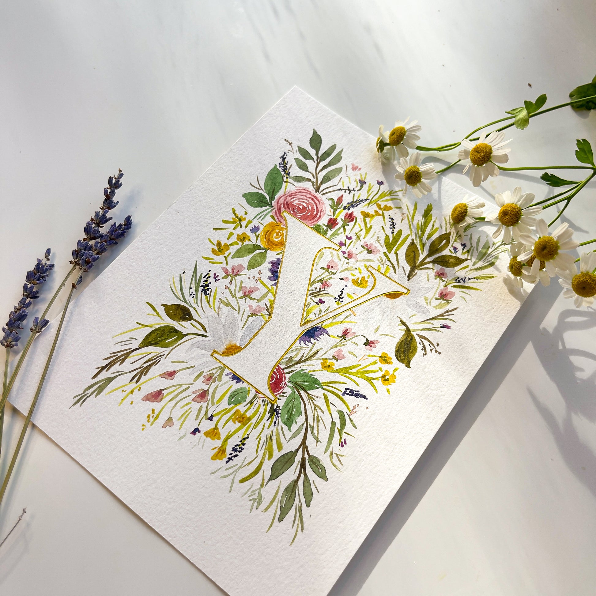 Add a timeless touch to any space with this one-of-a-kind, monogram painting! An original watercolor design, featuring a metallic gold-outlined letter, captures beauty and elegance in one enchanting piece. Get it now, before it's gone forever!