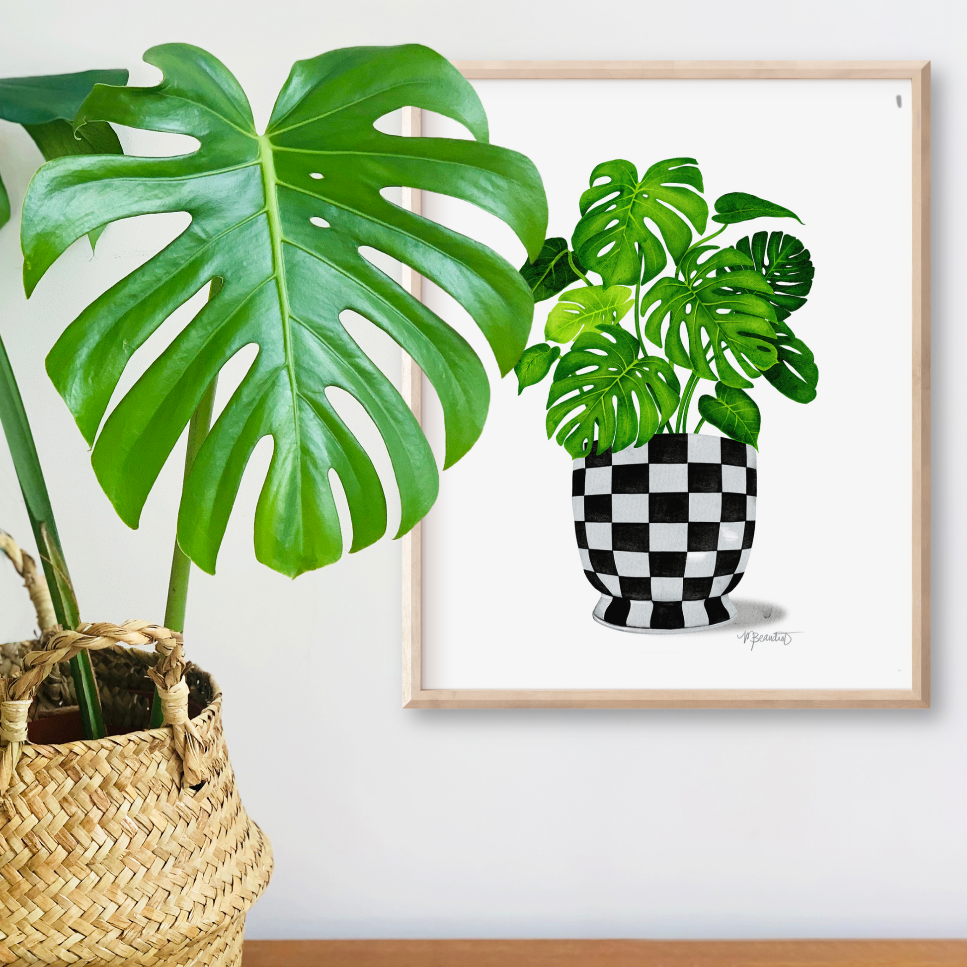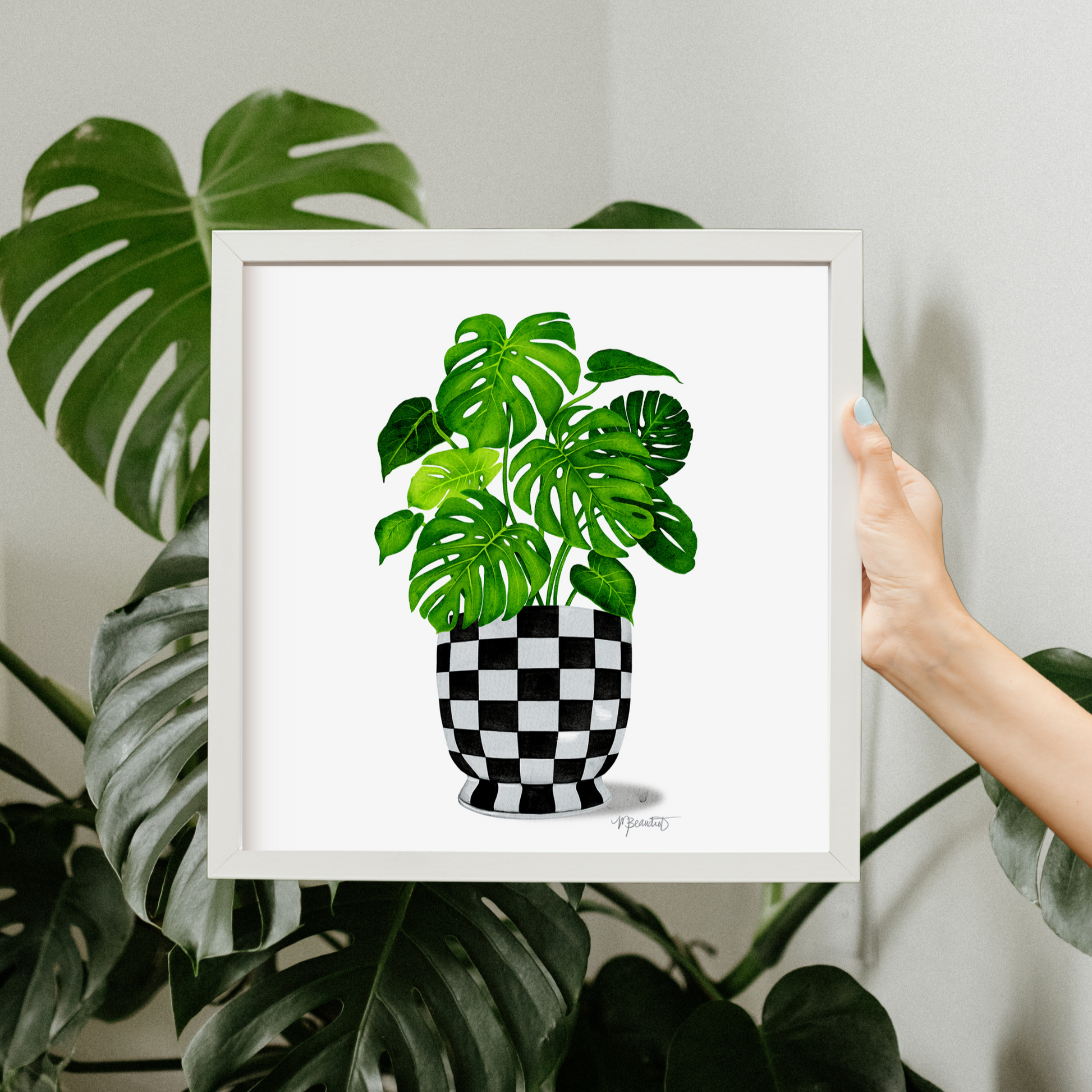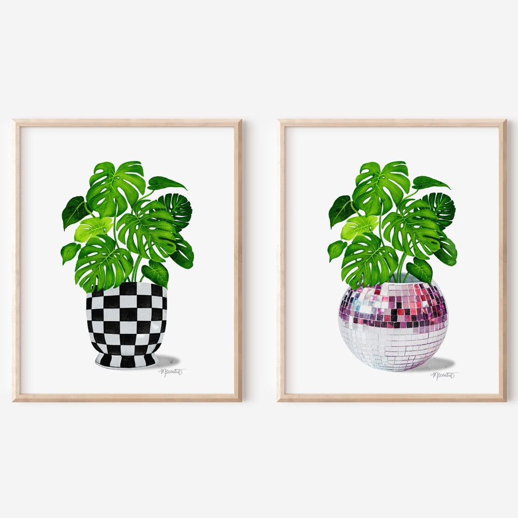 Brighten up your walls and boost your dopamine with this playful Monstera Checkered Pot Watercolor Art Print. This quirky print features a monstera plant in a black and white checkered pot, adding a touch of whimsy to any room. Embrace your inner maximalist with this unique and playful piece!