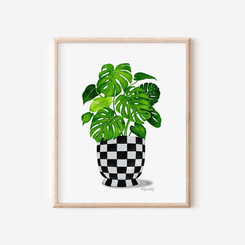 Monstera Checkered Pot Watercolor Art Print