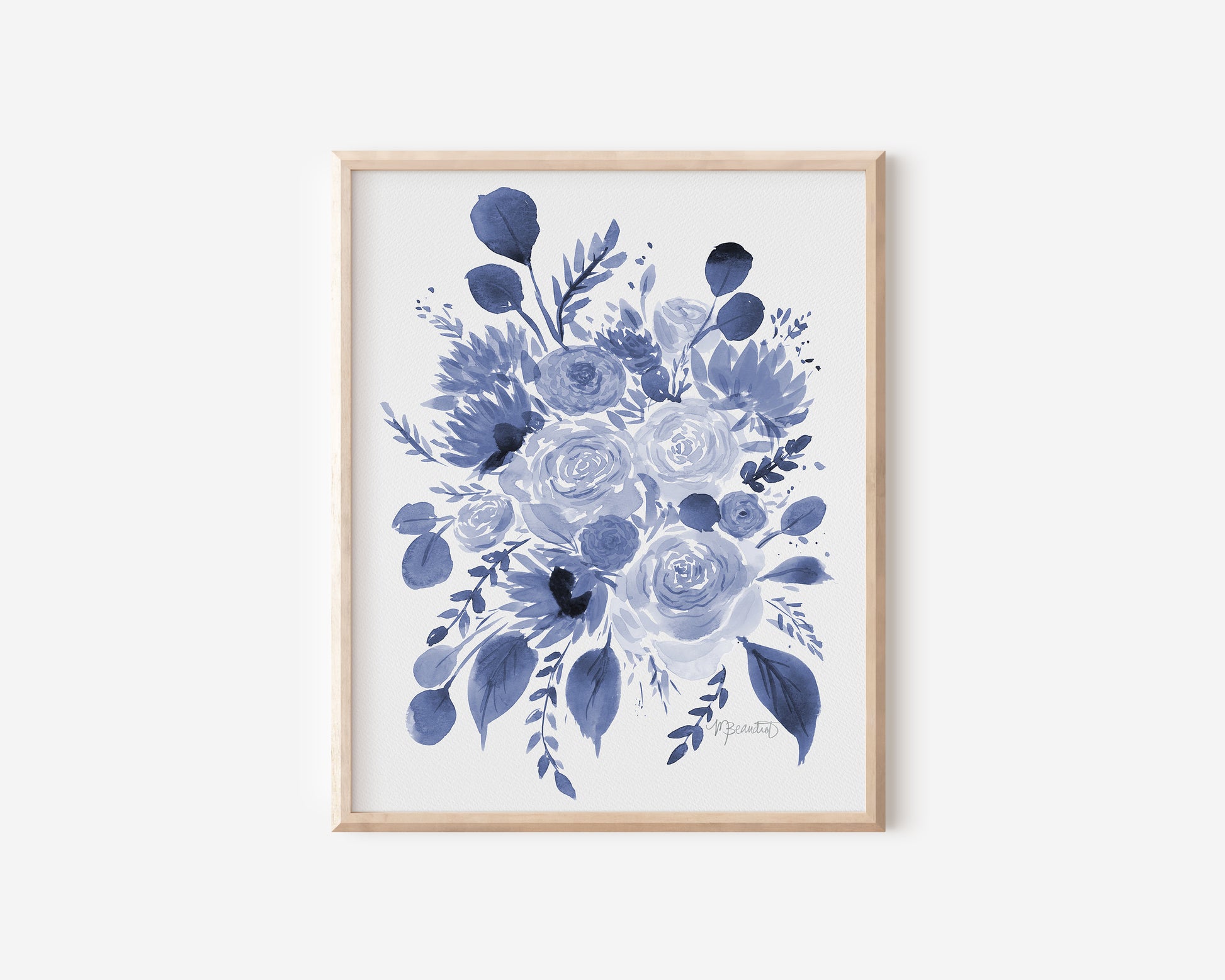 Navy Bouquet Watercolor Botanical Print