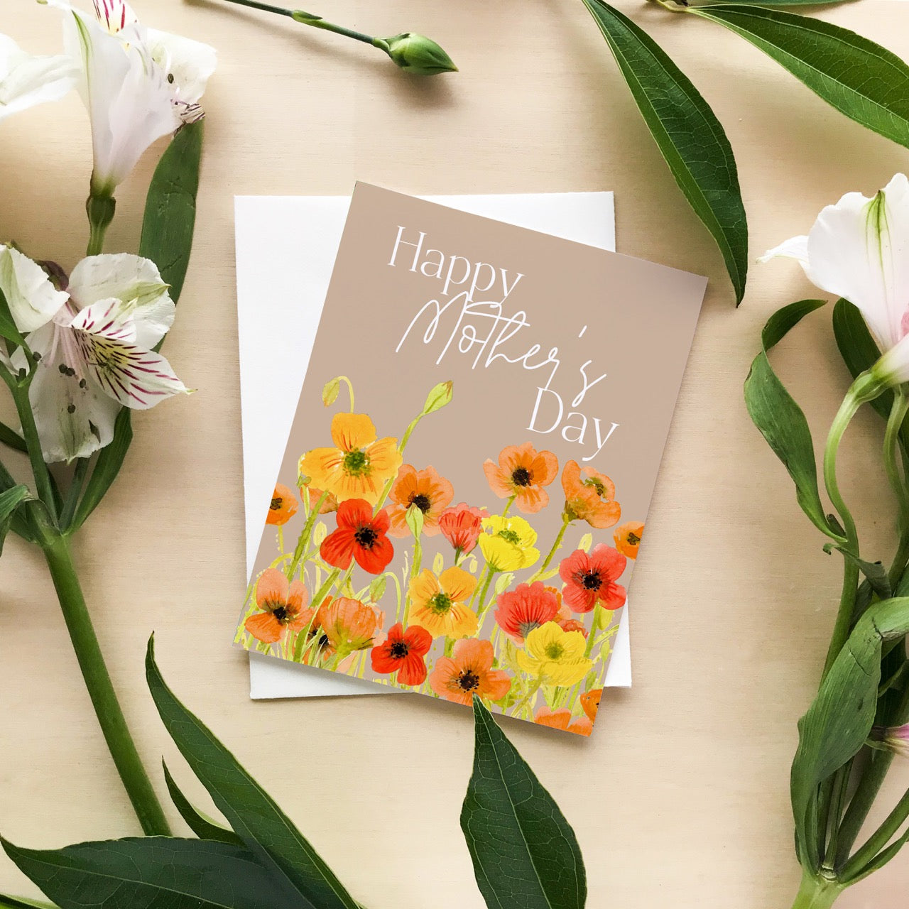 Celebrate Mother's Day with this vibrant poppies greeting card. Show your love and appreciation with this bright and cheerful design. Perfect for all the incredible mothers in your life!