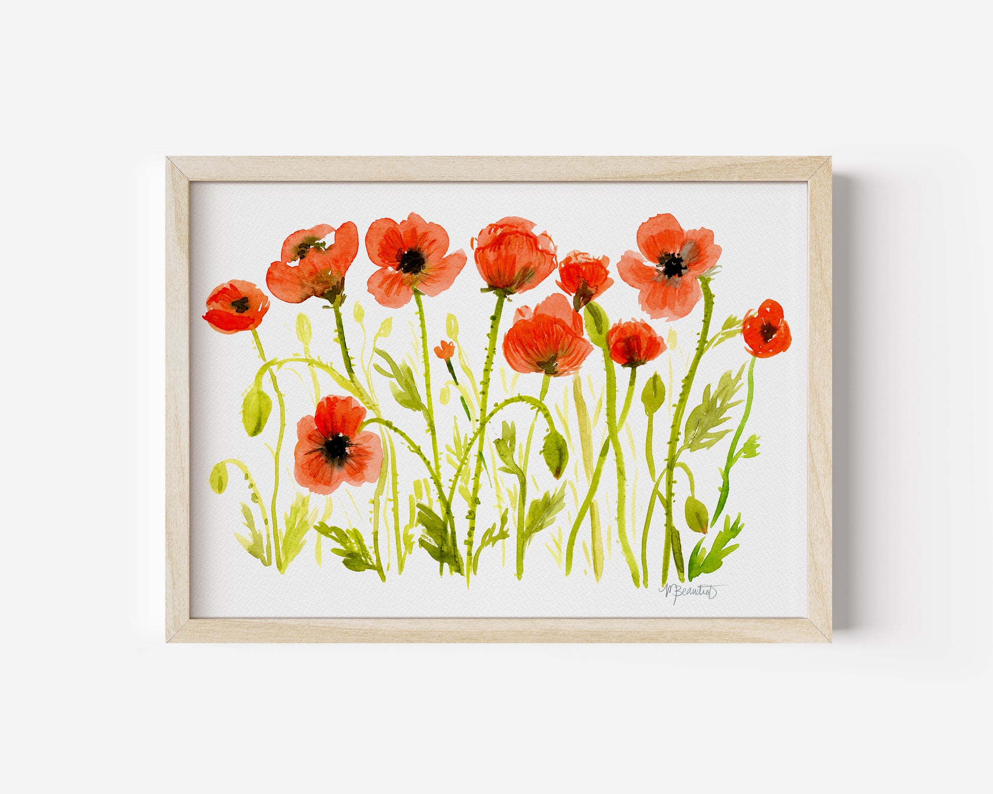 Our "Red Poppy Field" Watercolor Painting Print is a stunning floral masterpiece that captures the enchanting beauty of nature. This high-quality print portrays a vibrant field of crimson poppies in full bloom with meticulous attention to detail. Add a touch of natural elegance to your space with this exquisite artwork.