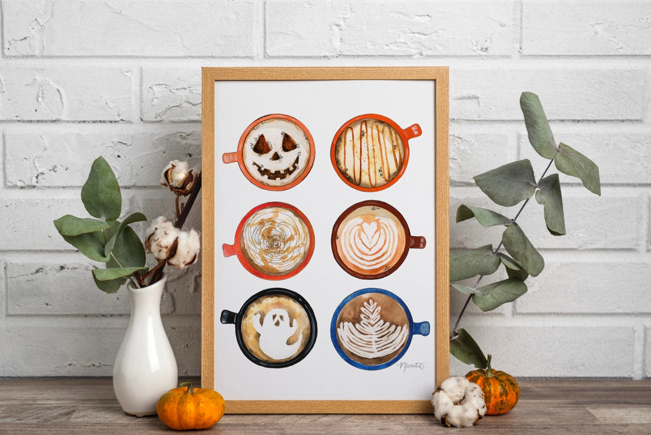 Pumpkin Spice & Haunted Delights Watercolor Art Print