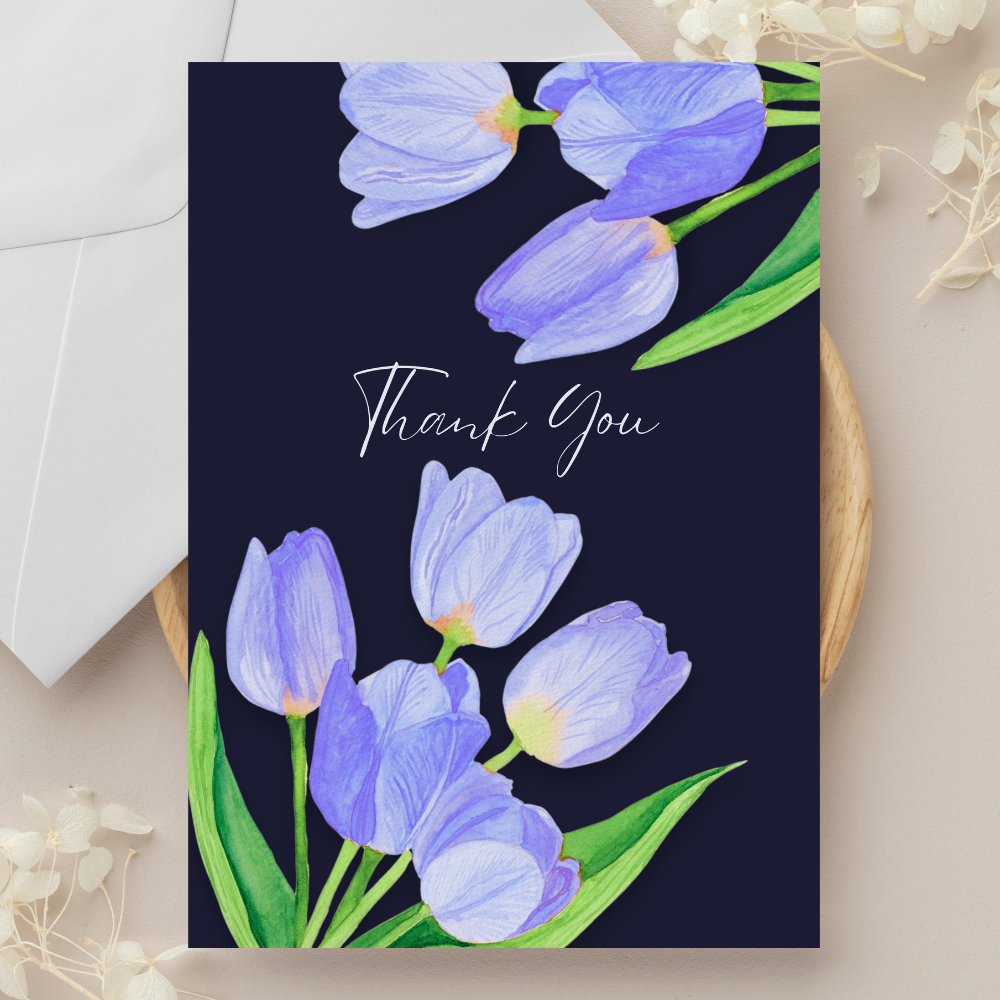 Say thanks in style with our Thank You Tulips Navy Greeting Card.