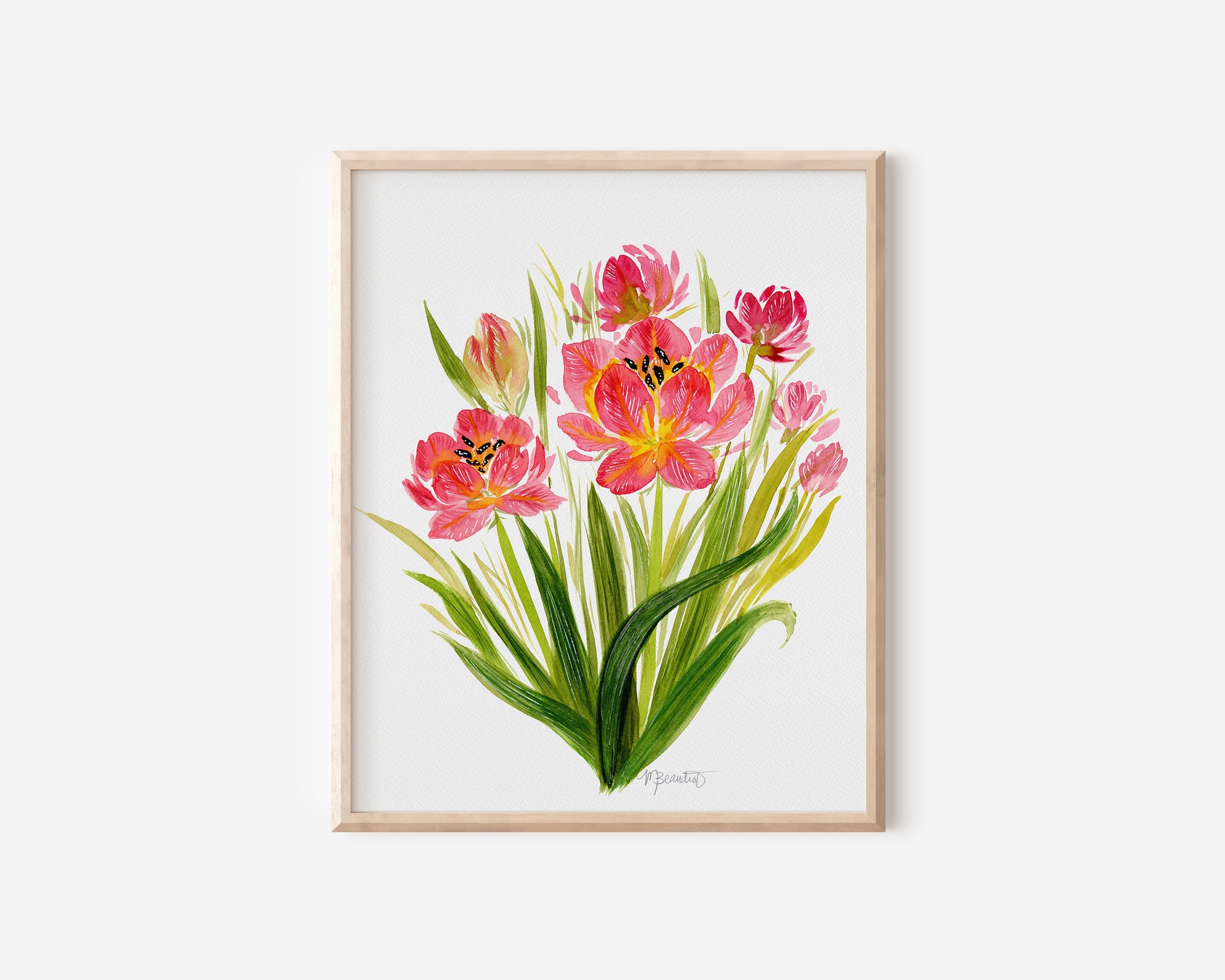 Stay rooted in the beauty of nature with this delicate Tulip Peony Watercolor Botanical Print! Crafted with vivid watercolor hues, this print will make any room bloom with style! Add a pop of color and a breath of fresh air to your walls with this stunning piece of art.