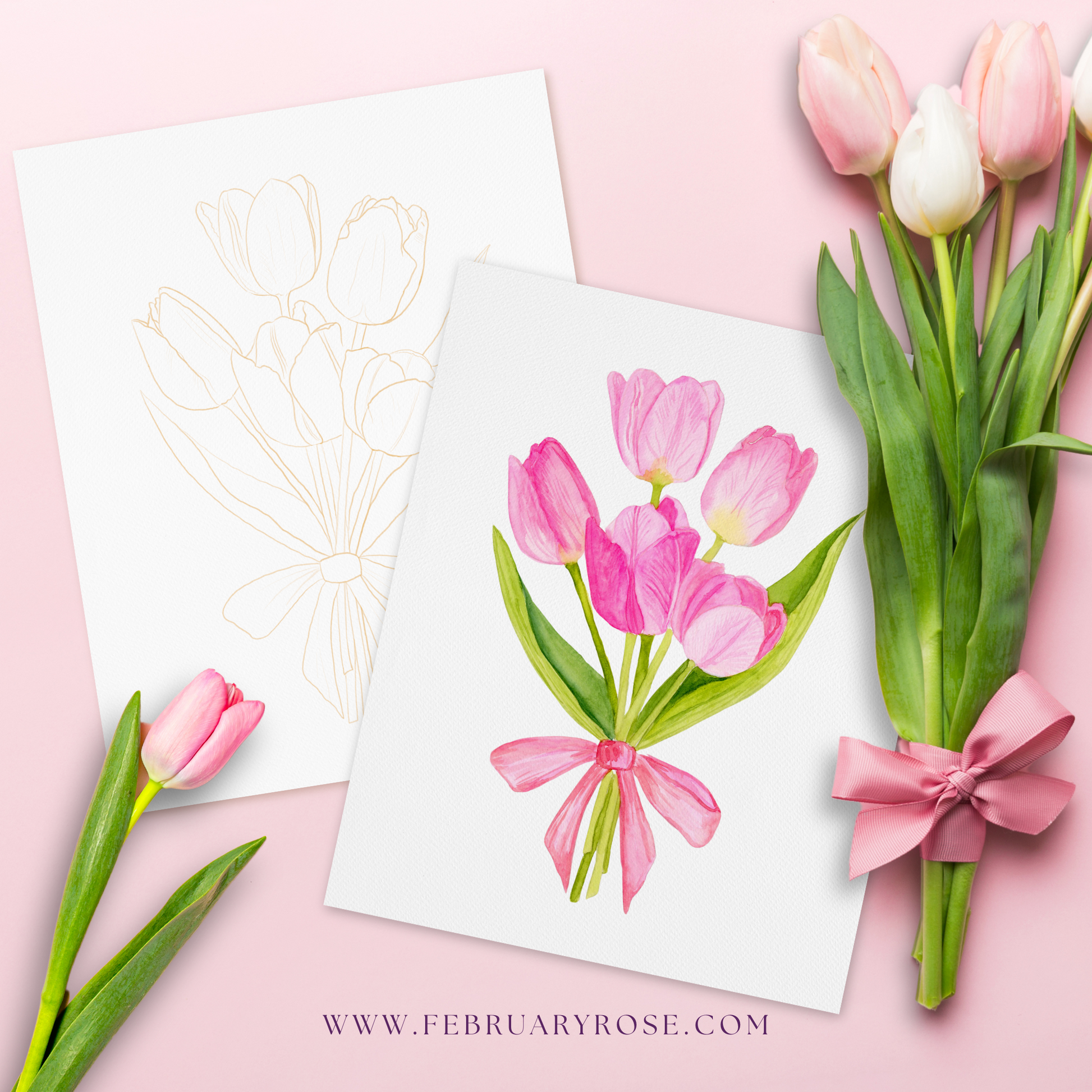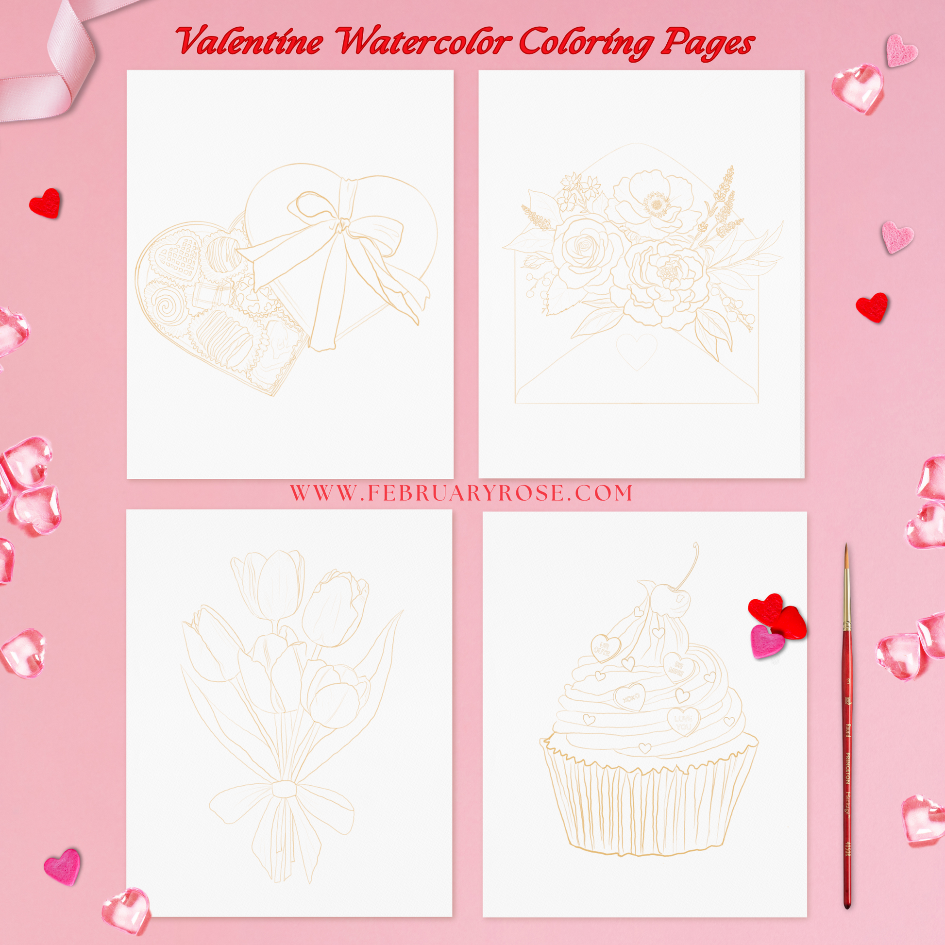 🎨 4 Valentine’s-Themed Line Art Designs (8" x 10") Printed on heavyweight 300gsm Cold Press Watercolor Paper for the best painting experience: