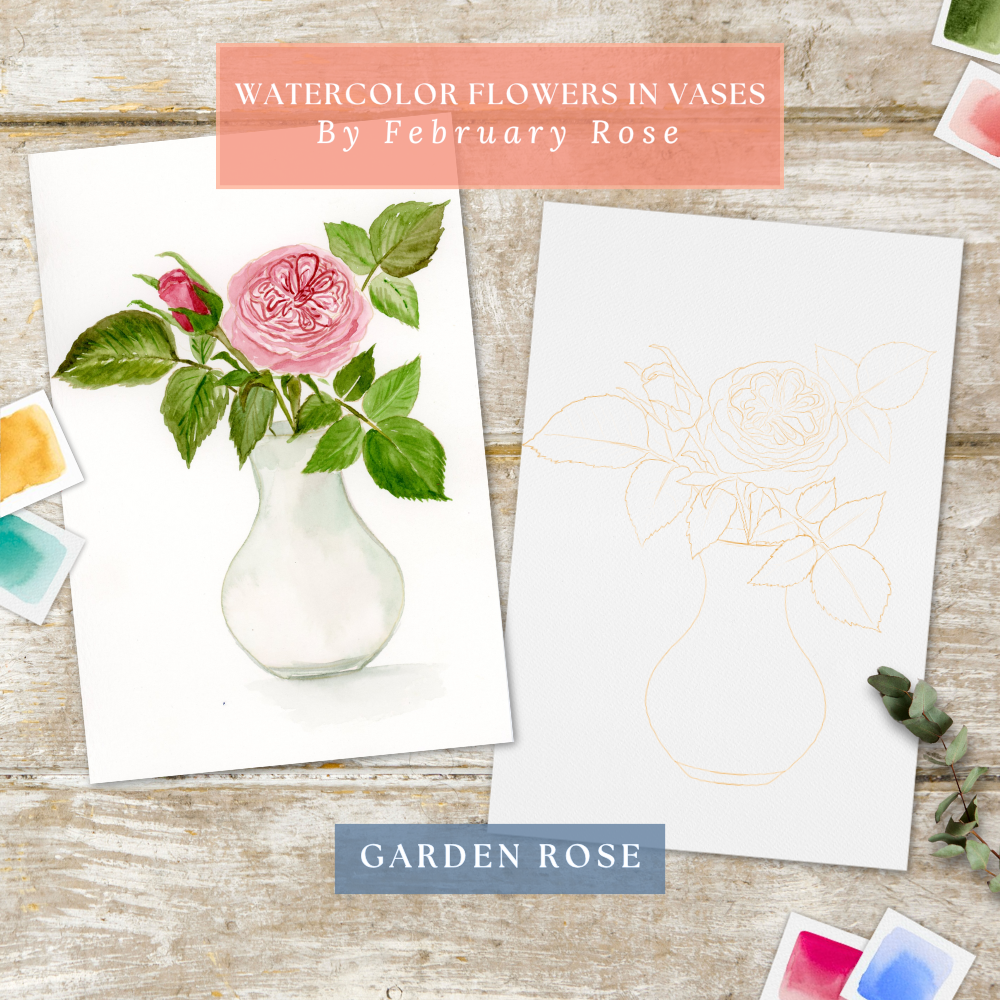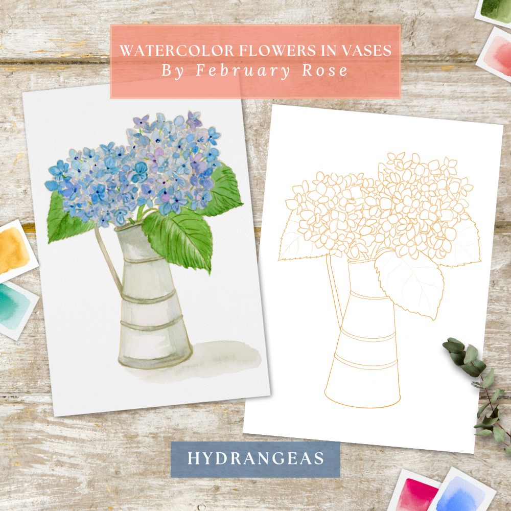 Watercolor Flowers in Vases Collection No. 1 Watercolor Coloring Pages ONLY